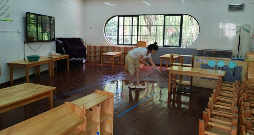 为了给幼儿营造干净整洁、安全舒适的生活和学习环境,开学前,全园教职工各司其职,对幼儿活动室、各功能室、厨房、户外器械、户外玩教具等区域进行了深度清洁和消毒工作,确保孩子入园时有一个安全、洁净的生活环境。