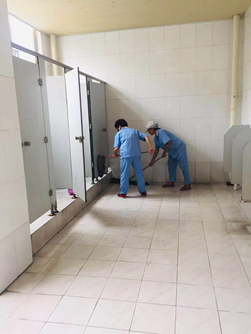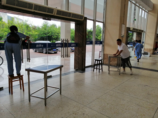 为了尽心尽力做好后勤服务保障工作,让700名香港青年与四川青年留下深刻的印象,西华物业管理服务中心于8月20日就开始提前部署、精心筹备。虽然天气炎热,但物业管理中心从领导到值班人员、保洁、秩序维护队员热情依旧高涨,冒着酷暑,干劲十足,秉承“不怕苦、不怕累”的物业人精神,就活动所在场地-四食堂(学生活动中心公共区域)、7教大剧场外围区域清洗地面、厕所,玻璃、台阶、路面、垃圾桶等进行清扫及擦拭工作,汗水浸湿了他们的衣衫,每一个角落都留下了他们的身影,他们的默默付出只为川港青年们有一个温馨难忘的交流活。