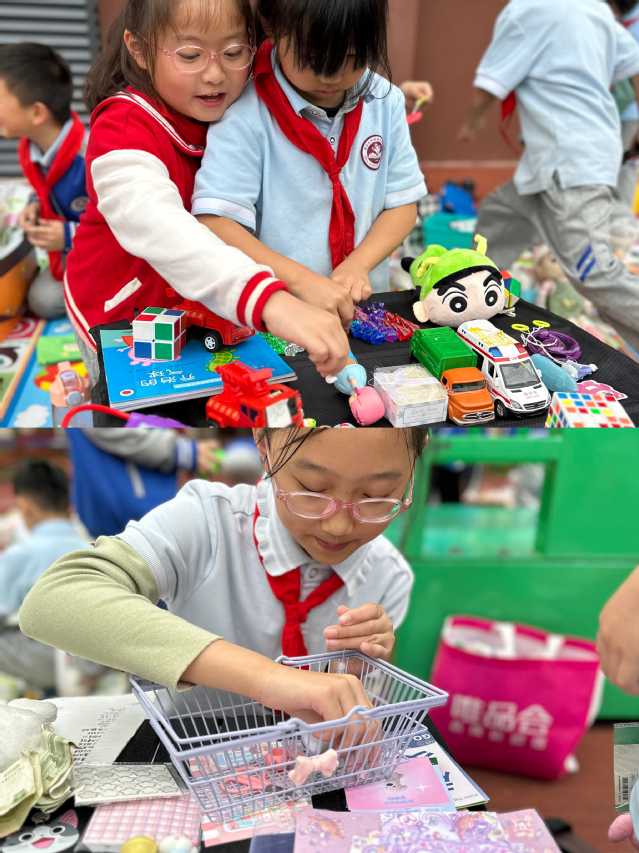 活动现场人头攒动,热闹非凡。小小“销售员”们做起生意来有模有样,他们用期待的目静静地注视着“淘客”们的到来。有的讨价还价,有的主动推销,有的“捆绑销售”,有的“买书赠礼”,还有的同学做起了“流动商贩”,开始了“沿街售卖”……小老板和小顾客们收获满满。