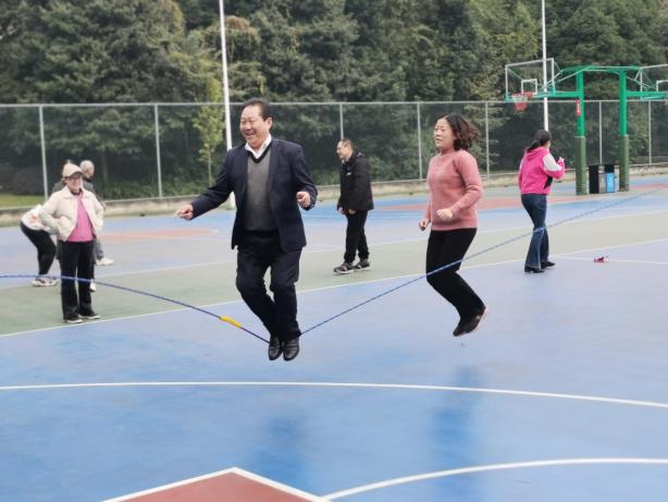 趣味运动中,老、中、青三代工会成员通力配合,高度热情的参与了穿梭跳绳、花式踢毽、保卫阵地(踩气球)等运动项目。年长的工会会员轻盈如羽地穿梭在跳绳游戏中;青年会员脚上的毽子像听话的精灵,上下飞舞;中年会员闪身巧妙地多次躲开对方的攻击,一个不少地保卫了自己的气球。