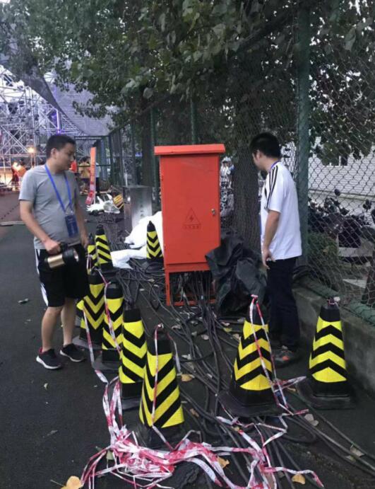 后勤服务总公司领导高度重视活动供电保障工作,按照公司统一部署,水电管理服务中心制定了周密的保电方案,并提前一个月向国家电网郫都供电分公司提出了保电申请。中心领导与员工全力以赴,紧紧围绕实现保电目标和要求,凝心聚力、协同作战,针对现场实际用电情况,精心制定保电方案,提前组织人员到现场协助相关单位布线、接线,放电缆等工作。自当天下午17时起,中心多名供电保障人员全部到岗到位,并按计划分成多个工作小组,在开幕式现场配电箱、主电源开关等重点部位进行巡视和值守。同时,学生宿舍管理服务中心积极配合,晚会开始之前,已将临江苑部分楼栋动力、照明电源关闭,确保晚会不会因用电负荷较高,导致跳闸。晚会期间,我中心全体保电人员严守工作纪律,坚守岗位,保电工作体系高效运转。