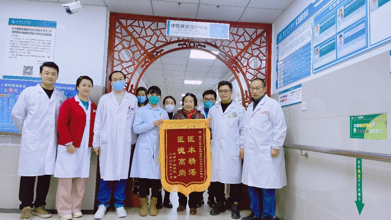 “胡医生,谢谢你们,是你们精湛的技术、高尚的医德、和蔼的态度使我们感受到家的温暖,你们不愧是‘白衣天使’,是学校的好医生啊……”。一面印有“医术精湛 医德高尚”的鲜红锦旗,由患者邱老师郑重地送至胡绍波主任手中。12月22日虽是寒冷的冬日,但这份荣誉却给我院中医康复理疗中心带来了如春天般的温暖。