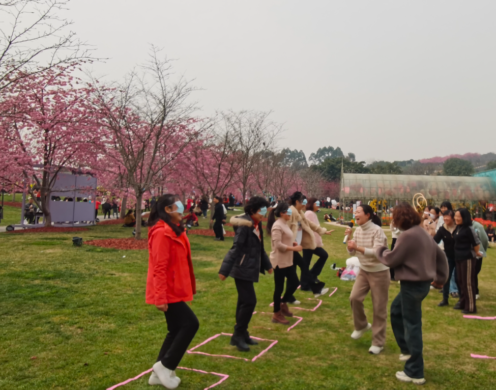 幼儿园精心准备了“蒙眼原地踏步”、“蔬菜跳跳跳”等小游戏。活动现场,所有人都积极参与其中,音乐声、欢笑声、掌声此起彼伏。教师们尽情释放工作和生活中的压力,感受活动带来的欢乐,活动氛围既温馨又热闹,吸引了许多游人驻足观望。