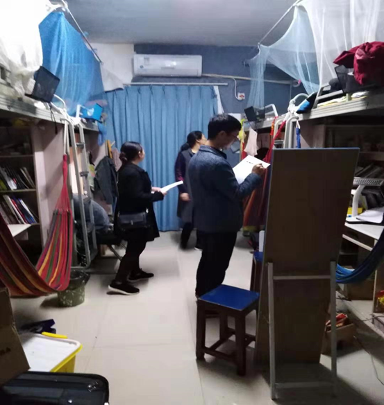 除了平时的日常安全检查工作外,宿管中心督查工作组对学生宿舍区域开展了全覆盖、全方位安全隐患排查工作。重点检查了园区的消防设施是否齐全,能否正常使用,同时将检查情况报保卫处消防科备案,并进行及时整改。排查了所有园区是否有超载用电、私拉电线等情况,同时对各园区园舍、天花板、外墙等也进行了巡查。再次要求各园区所有员工将安全这把利剑高高悬挂在头顶,时刻警醒,如履薄冰、仔仔细细地做好日常的各项安全检查,做到全面检查与重点检查相结合,定期检查与日常防范相结合,认真填好每份安全表格,及时消除各种安全隐患,把安全工作做细、做实,才能最大程度地保障园区乃至学生生命等各方面的安全。