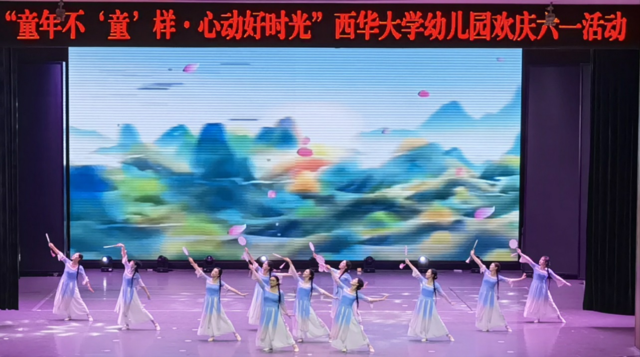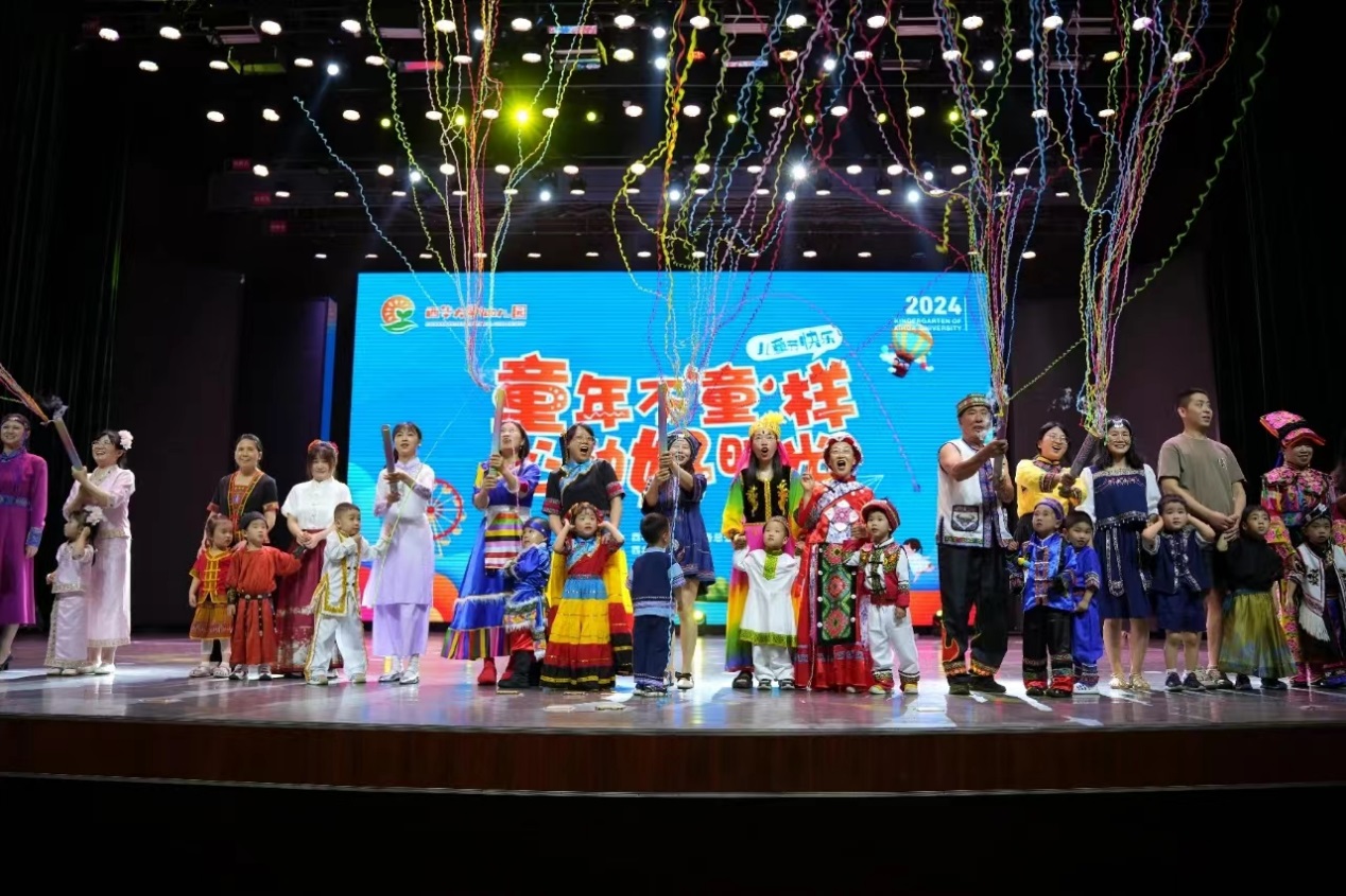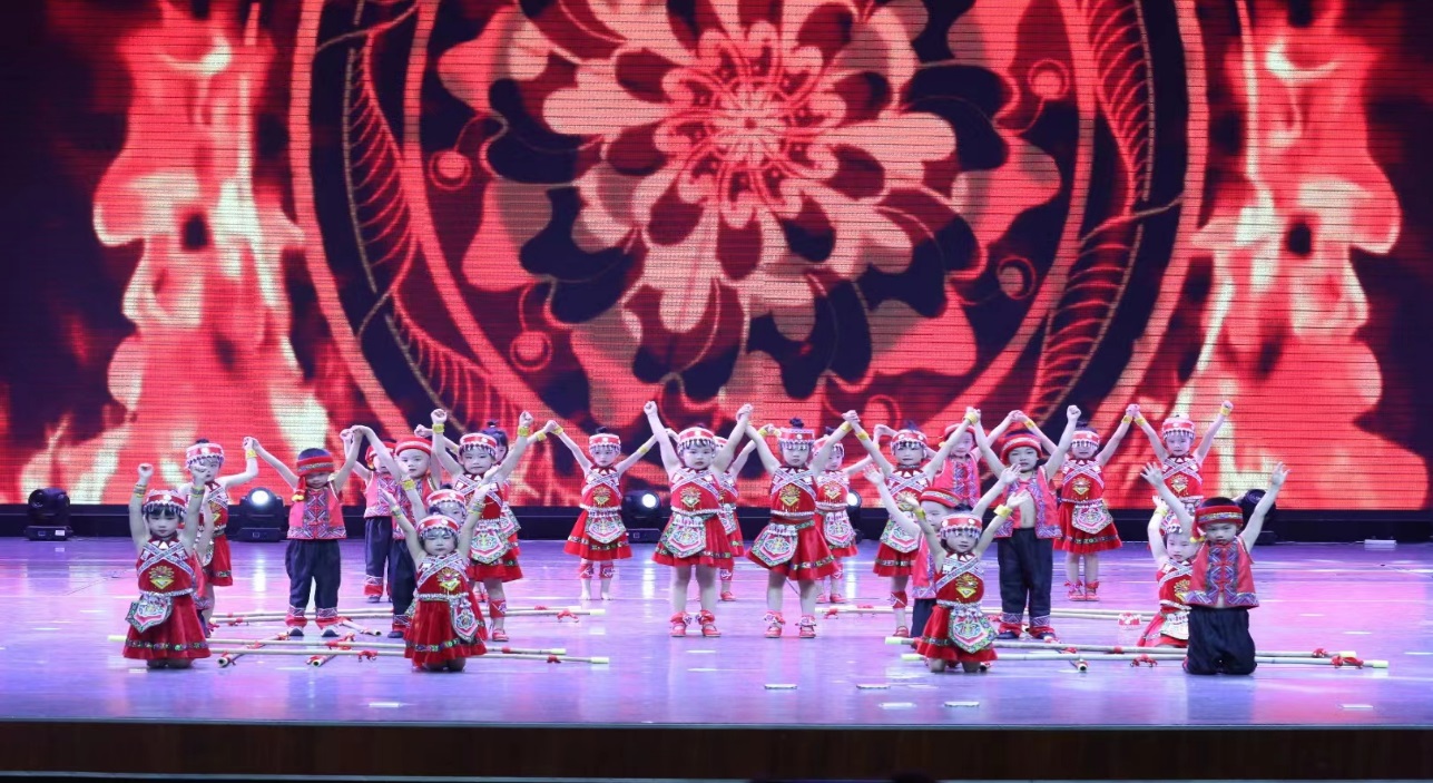 伴随着美妙的音乐,文艺汇演在小主持人热情洋溢的童言童声中正式拉开了帷幕。家长代表杨俞隐妈妈对幼儿园开展的各项工作给予高度认可,对关心呵护孩子们成长的学校领导、幼儿园老师表示感谢,幼儿代表杜永曦小朋友用稚嫩的声音感恩所有老师的辛勤付出。活动现场,老师和孩子们用舞姿、竹竿、非洲鼓、歌声、篮球、乐器、情景剧等来表达他们激动的心情,自信大方地展示着才艺。教师舞蹈《小城谣》,这首充满古典韵味的歌曲,以其独特的旋律和深情的歌词,带领我们走进了一个充满童真与梦想的世界;跟随竹竿舞蹈《丽江三部曲》快乐的节拍,孩子们敏捷地在竹竿之间进退跳跃,将优秀传统文化与现代艺术结合,展现出民族舞蹈的独特魅力;民谣《偷油嘴儿》一句句经典的四川童谣,让在场的大朋友仿佛又回到了天真烂漫的童年时代;亲子舞蹈《送你一朵小红花》和走秀节目《民族服装亲子秀》,爸爸妈妈们带着自信的笑脸走上舞台,与孩子一起互动,增进了他们和宝贝之间的情感交流,也促进了孩子身心的健康成长。汇演节目精彩纷呈,现场氛围十分活跃,孩子们在自己的节日中展现自我,体验成功,伴随着孩子们的欢声笑语,本次活动圆满结束。