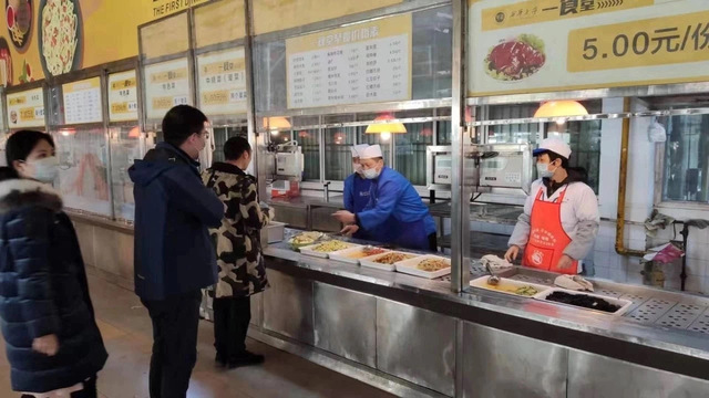 食品安全无小事,病从口入要预防。疫情期间,学校饮食服务中心高度重视,加强员工学习与宣传教育,全面及时掌握员工动态信息;制定了《饮食服务中心关于防控新型冠状病毒肺炎的工作方案》,严格落实防控措施;食堂一日三餐正常供应,工作人员戴上口罩,进行自我防护;食堂内时刻保持通风保洁,每日360°无死角进行消毒,为留校师生提供放心的饭菜。