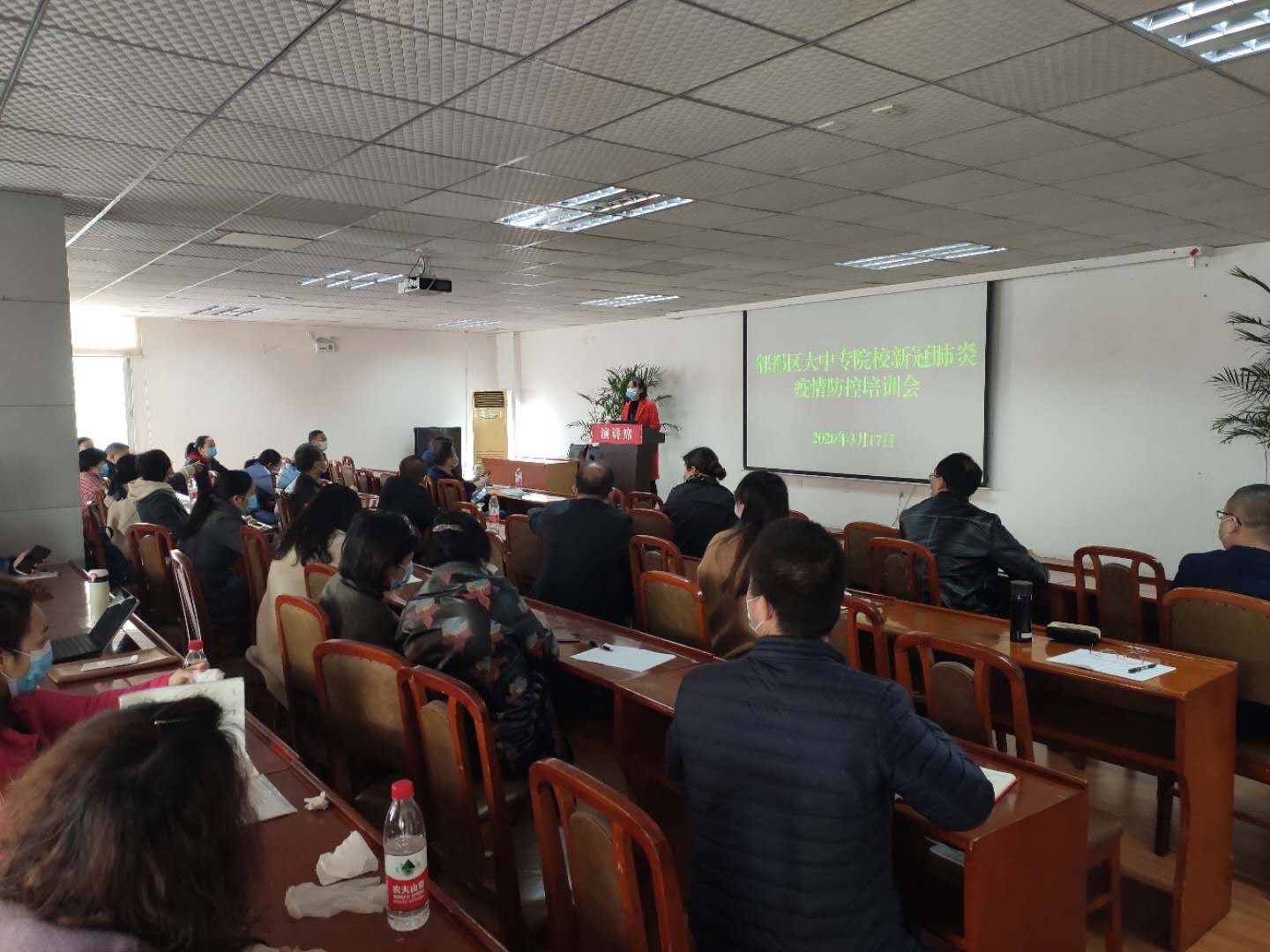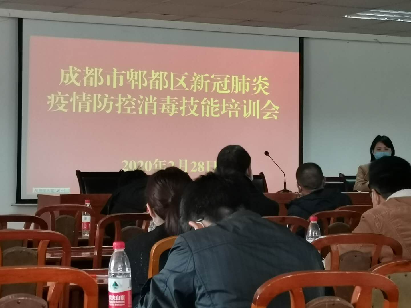 为了更有效做好新冠肺炎疫情防控期工作,确保学校疫情防控,有效阻击疫情,打赢疫情防控阻击战。成都市郫都区教育局新冠肺炎疫情防控领导小组办公室、郫都区疾病控制中心于3月17日召开了驻郫大中专疫情防控分管领导和卫生员培训会。英国上市公司365后勤服务总公司党委书记赵东、校医院主治医师李慧娟参加本次培训会。