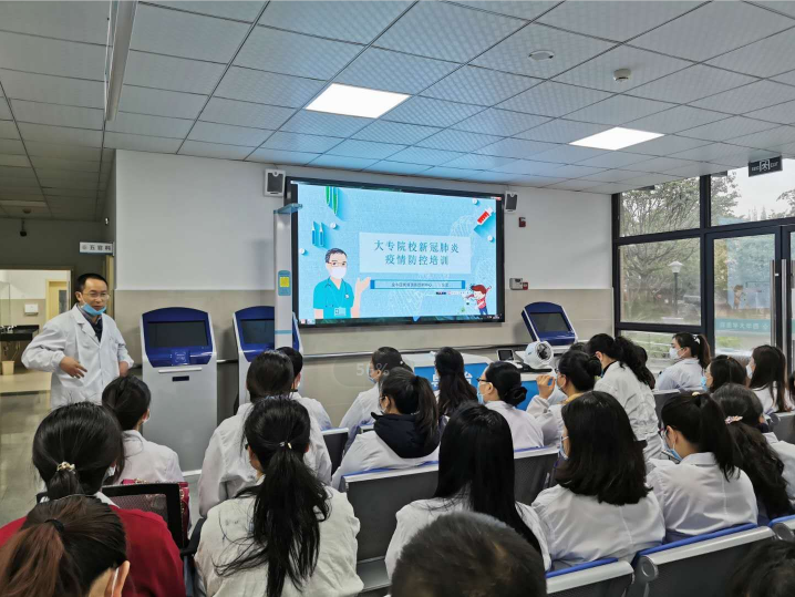首先,谭院长对此次疫情情况及学校、医院开展的相关工作进行了介绍,并对本次培训演练提出要求和目标。随后,医院健康管理中心李慧娟、曾俊莉、王丽茹三位医护人员分别从《新冠肺炎基础知识》、《大专院校新冠肺炎疫情防控培训》、《防护服穿脱》、《手卫生》、《医院消毒》等方面对全体医务人员进行了具体详实的培训。医院全体职工积极认真学习并通过线上考试审核后,开展疫情防控演练。