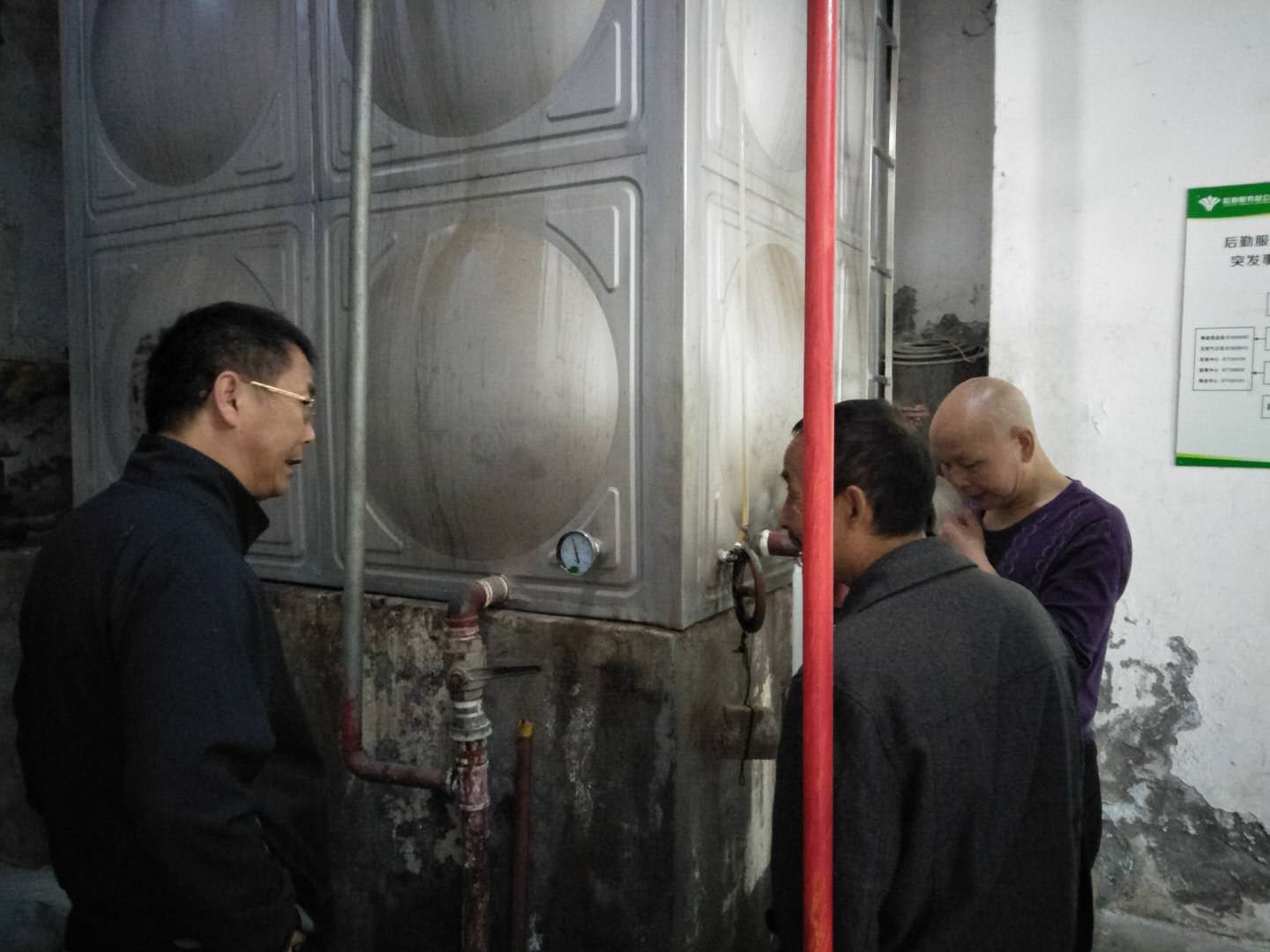 维修过程中,中心维修工作人员对锅炉房中的供水阀门、供水管道逐一检查,对存在漏水的管道,损坏的阀门进行认真勘测、反复确认,中心领导同员工一起制定维修工作方案。为确保学生返校复学后锦地苑、临江苑两处开水房能正常启用中,中心员工高效、快速的安装完开水房内的龙头。另一方面,中心积极联系浴室卡机维保单位,对存在问题的卡机进行更换、维修,力争学生返校后浴室能够提供充足的浴位满足学生洗浴需求。