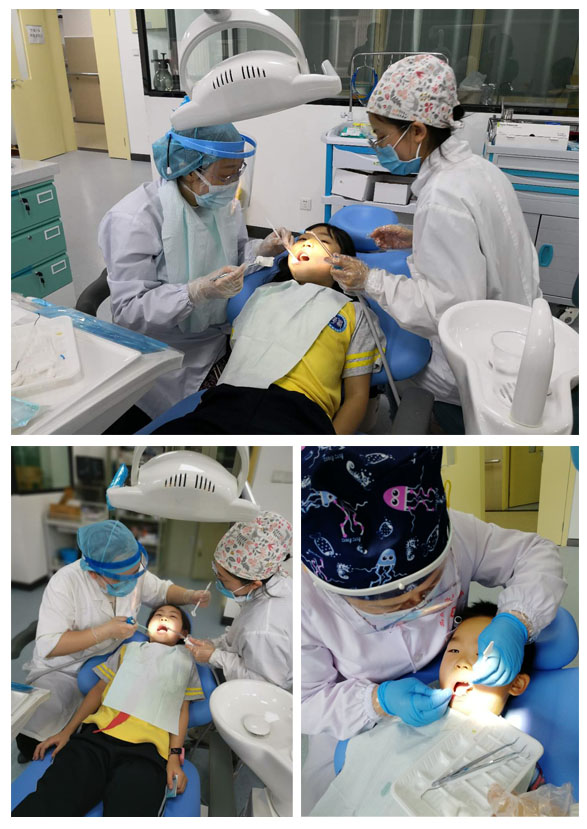 医生们耐心细致地为小朋友们进行口腔检查