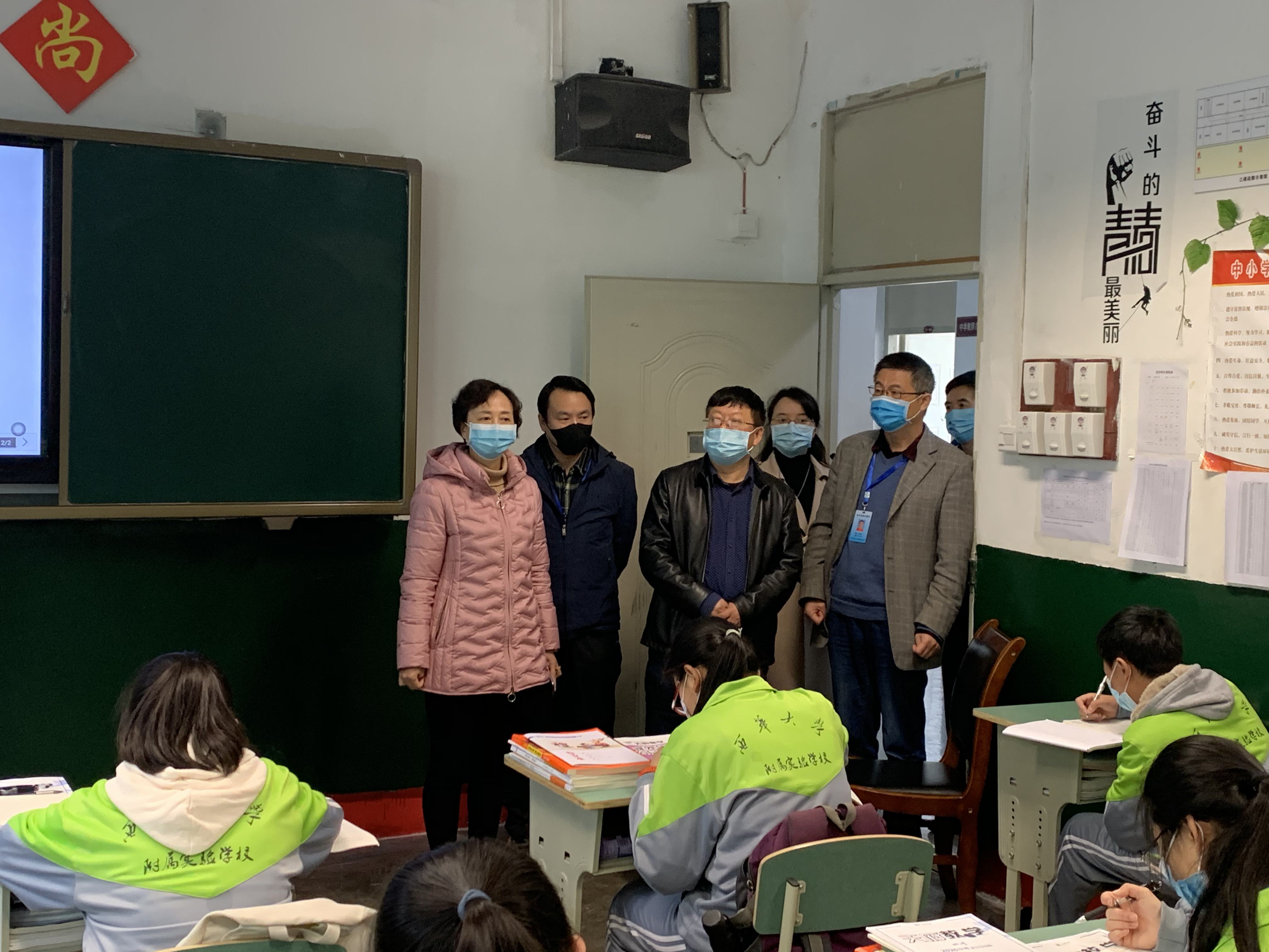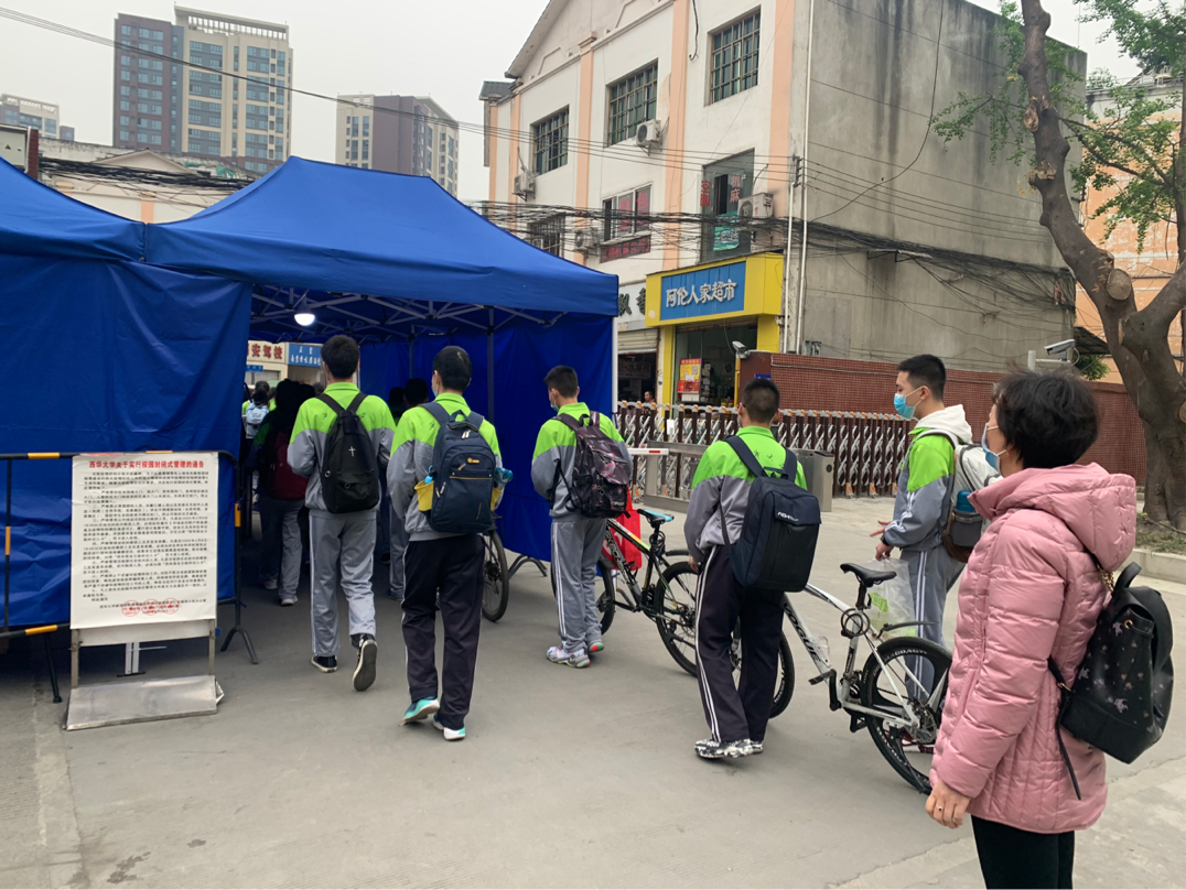 早上8:00,金牛区教育局督导组一行在校门口查看学生进校的各个环节,对附属学校组织学生错峰入校、有序进校进行现场指导。