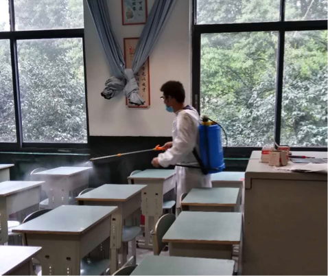 放学后,工作人员对教室全方位进行消毒