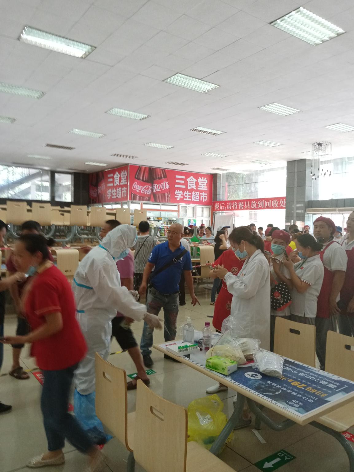 为了确保全校师生饮食健康安全,为学校开学开餐做好充分准备,后勤服务总公司饮食服务中心提前通知全体员工返校,进行健康排查。 8月24日,金牛区食品药品卫生监督局及千麦医院一行来我校开展核酸检测采样工作,后勤服务总公司饮食服务中心组织全体员工分批依次采样,进行新型肺炎冠状病毒核酸测试。目前饮食服务中心全体员工均已通过检测,全部显示阴性。此举不仅保障了所有餐饮服务人员的健康安全,同时也为全校教职工提供了安全的餐饮服务保障,筑起了一道牢可破的战疫防线。