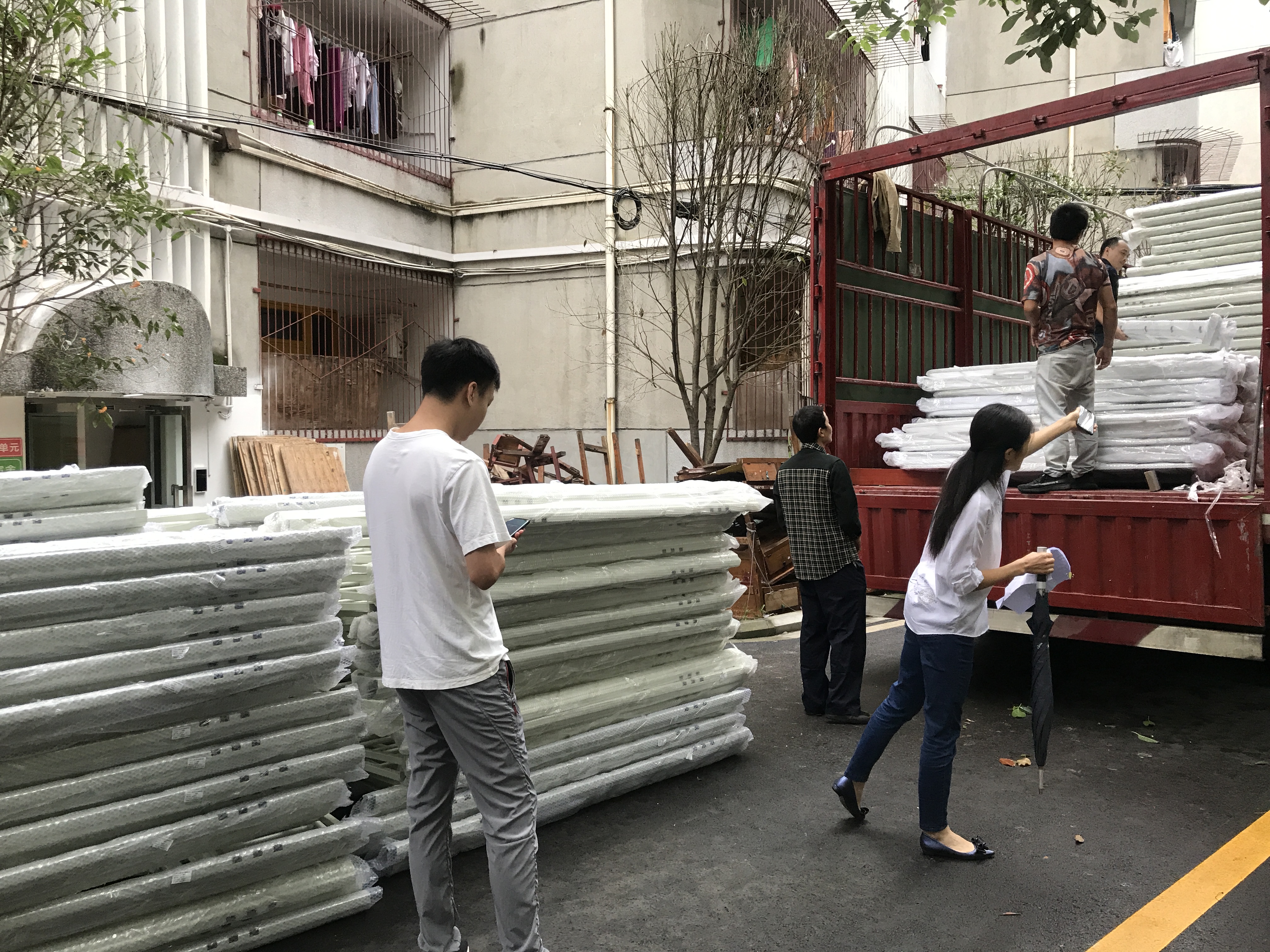 暑假期间,宿管中心全体员工上下齐心,铆足了劲,完成了2000余间毕业宿舍腾空后废旧物品的清除、宿舍内外广告清理等工作。由于疫情的影响,宿舍维修的施工方和更换家具的供货方各项工作与中心的入住准备工作时间上交叉,加大了各项工作的难度,为了保障新生的按时顺利入住,宿舍值班工作人员积极配合供货方彻夜安装新床和家具,施工方对寝室进行维修的同时,中心全体人员全员到岗,多次加班加点与施工进度合理交叉安排,及时完成了所有迎新寝室内外整体卫生的清洁消毒工作。