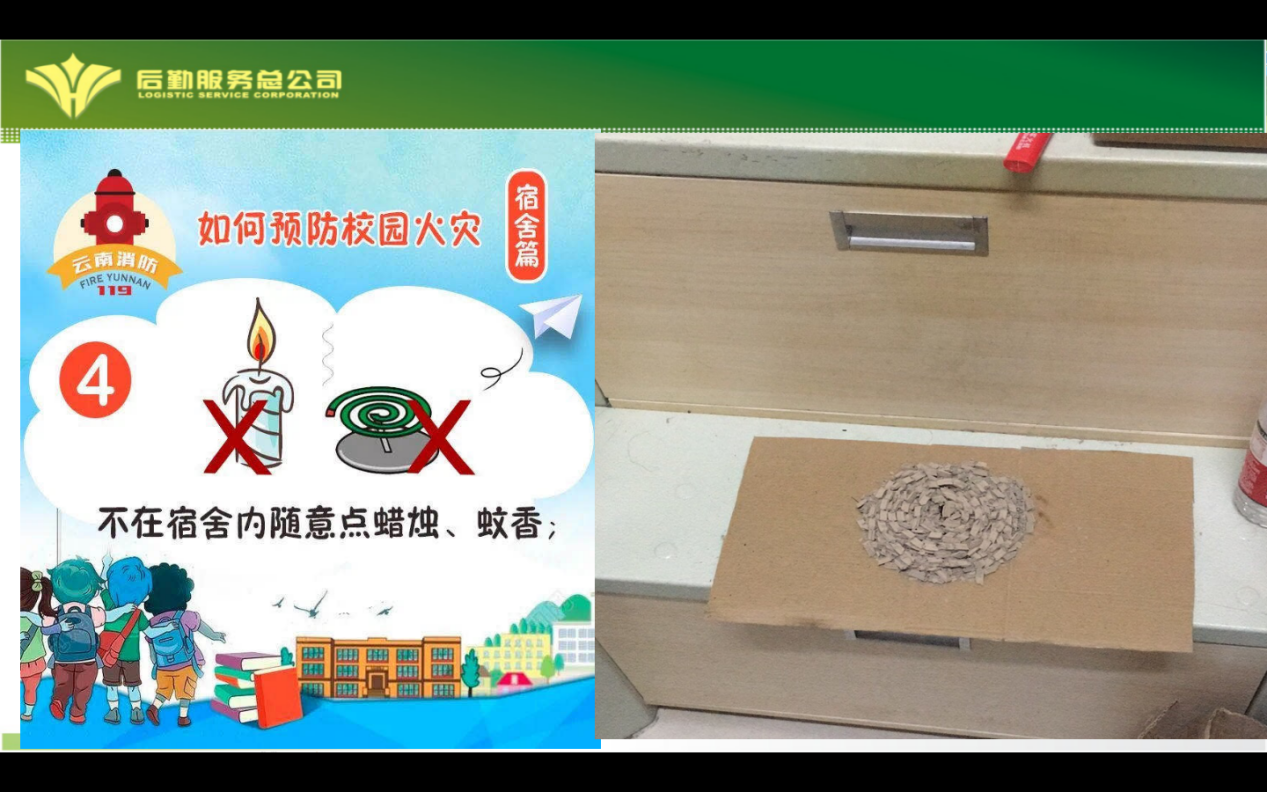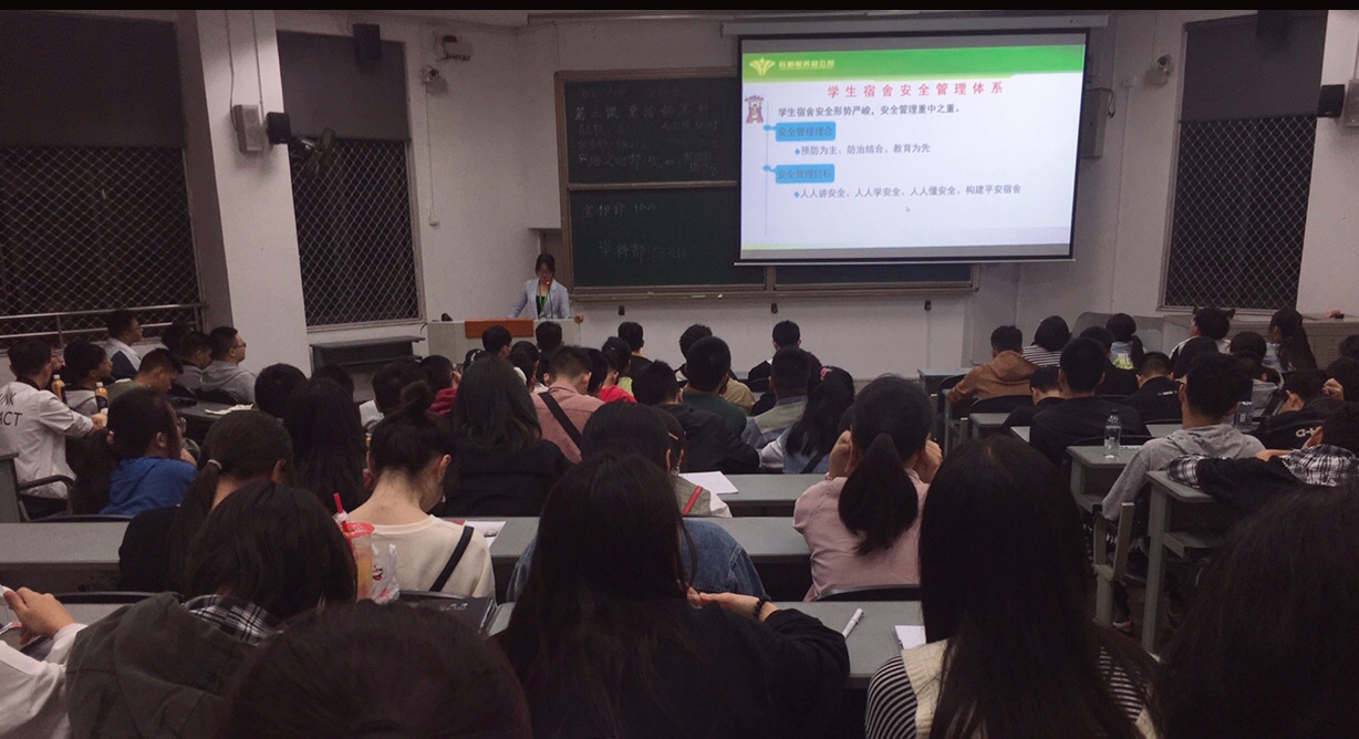 “隐患险于明火,防范胜于救灾,责任重于泰山”。为增强我校新生的安全意识和自我保护能力,同时让新生了解我校宿舍安全的规章制度,让“预防为主、防治结合、教育为先”的意识贯穿融入到新生的整个大学日常生活中,此次安全知识宣讲内容紧紧围绕学生宿舍安全管理体系。其中学生宿舍安全知识是重点内容,包括不使用违章电器、不私拉乱接电线、不在寝室内随意点蚊香、保管好贵重物品、不随意购买混入宿舍各种流窜商贩兜售的任何商品、防诈骗等。宿管中心老师播放了学生容易记住的动态PPT图片,并结合自身工作中的经典案例,让同学们如一次次亲历,在此过程中同学们认真聆听,达到加深安全防范意识的效果。此外,宿管中心老师还详细介绍了学生宿舍的安全管理体系及应急处理流程。