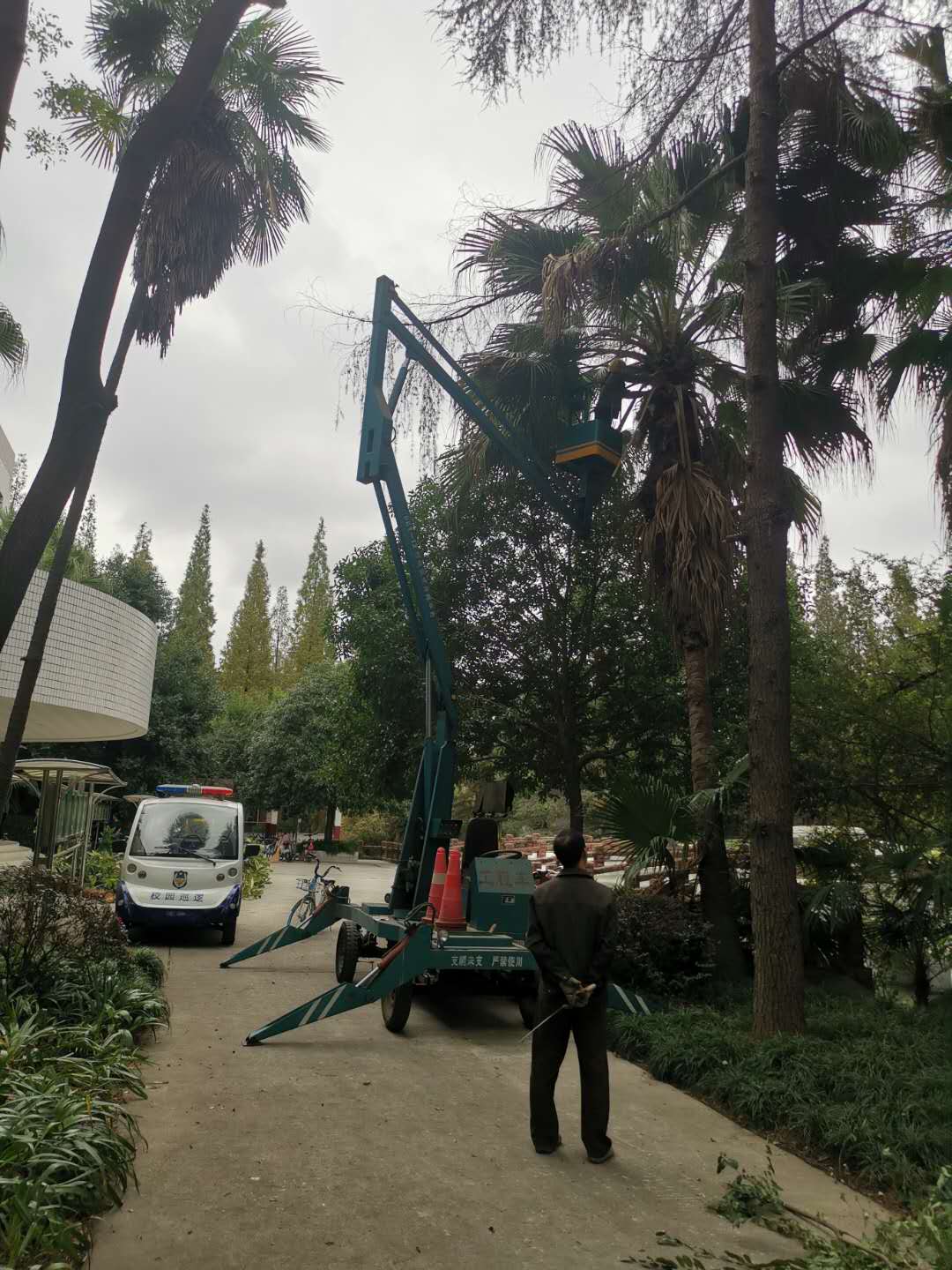 克服困难,做好绿化工作。本次校庆活动将在校史馆举行揭牌仪式,而校史馆周围有较多枯叶,而树木较高,修剪难度大,中心通过搭建人手扶梯、联系工程车等方式,在确保安全的前提下仔细清除枯枝黄叶,清运绿化垃圾,解决高大乔木的修剪难题。同时,中心对学校行道树、求是广场、大剧场等重点区域的树木、绿篱、草坪等进行有规律地修剪及补栽,全面施肥,促进校园植物能够枝繁叶茂,做好校庆期间的绿化养护准备工作。