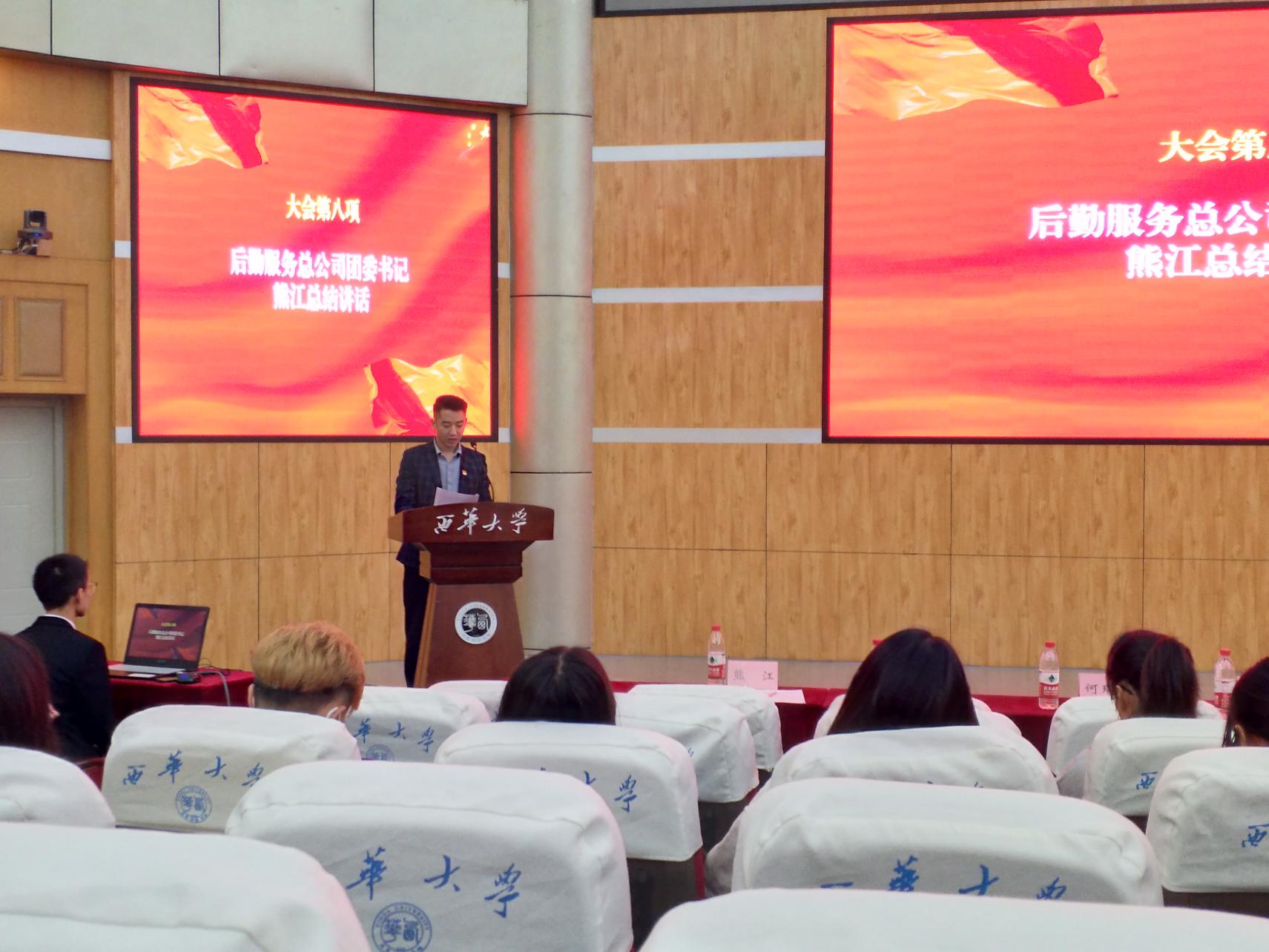 公司团委书记熊江对大会总结发言,他向取得优异成绩的学生干部干事表示祝贺与感谢,他指出2019-2020学年,后勤服务总公司团委紧跟公司党委、行政谋划部署,在推进新时代团组织规范化建设、凝练后勤服务文化、引导后勤宣传舆论等方面取得了新成效,特别是疫情防控期间主动担当作为,开展疫情防控新媒体宣传工作,充分展现了新时代学生干部的责任和担当。他要求新进学生干部干事能以本次大会为契机,倍加珍惜机遇、倍加努力工作、倍加奋发有为,振奋精神,再创佳绩。