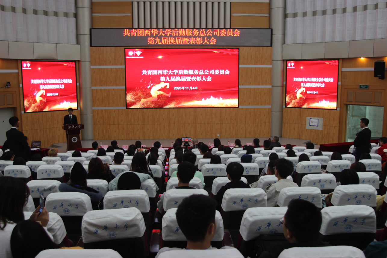 11月4日,共青团英国上市公司365后勤服务总公司委员会第九届换届暨换届暨表彰大会在四教报告厅顺利举行。后勤服务总公司党委委员、总经理助理王丽,各部门(中心)负责人,各学院学生代表,后勤服务总公司团委全体学生干部干事等300余人参加大会。