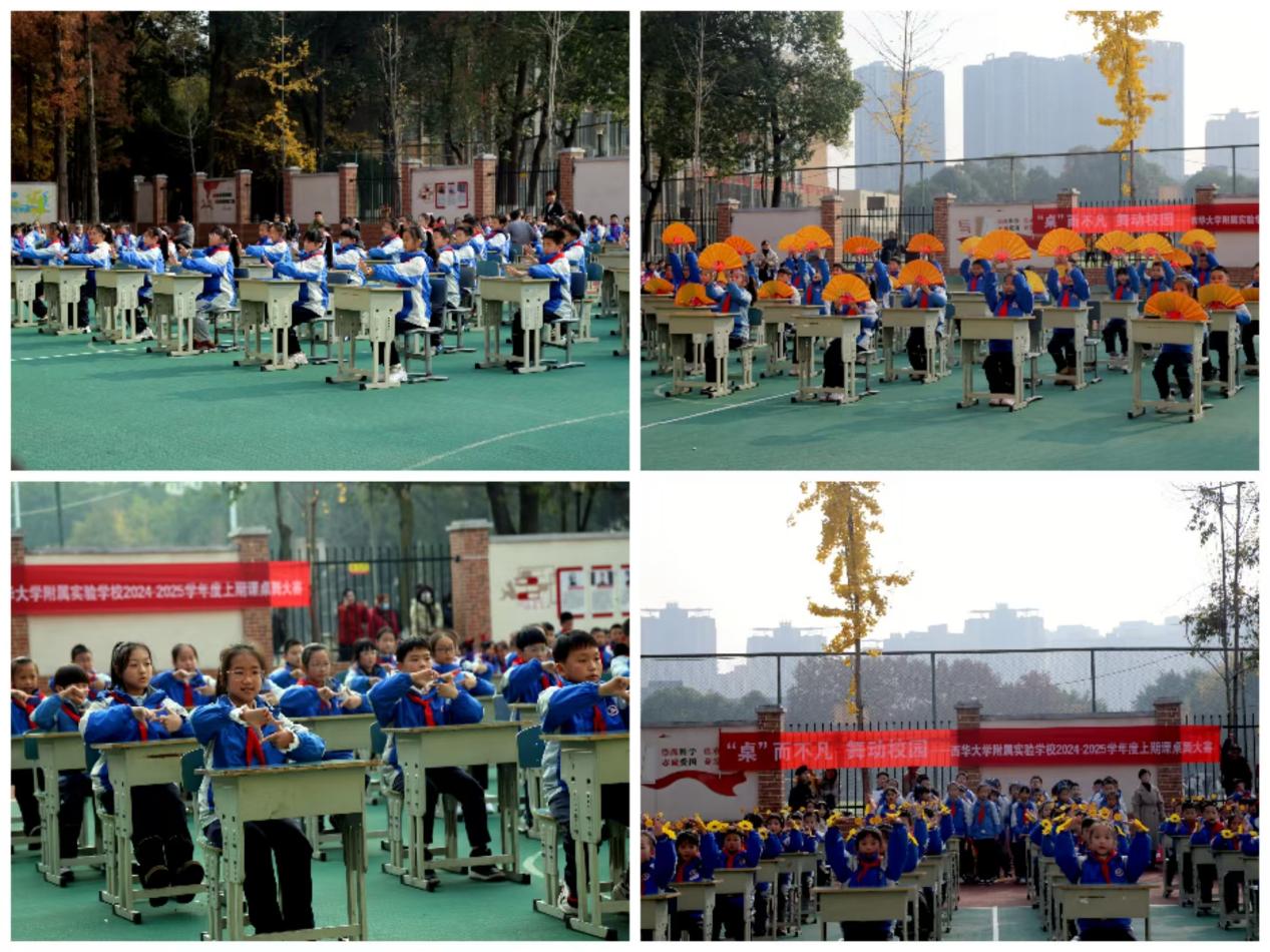 为进一步丰富学生校园文化生活,让课堂“活”起来,让学生“动”起来,助力学生阳光健康成长,促进学生德智体美劳全面发展,2024年12月16日下午,附属实验学校开展了课桌舞展演活动。