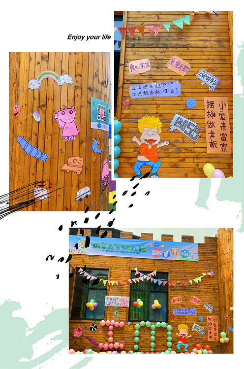 为了这次活动的顺利开展,家园双方积极行动,做了充分的准备工作。幼儿园成立了“跳蚤市场”筹备小组,老师们在课余时间一起勾画、剪纸、张贴、吹气球,自己设计并布置好了“跳蚤市场”的背景墙。家长们和孩子们精心设计了海报,制作了富有特色的摊位招牌,“闪电队”、“小猫队”、“跳蚤市场杂货铺”、“5个小朋友”、“中华解放军队”......每个摊位都有一个好听的名字,都有好看的海报。