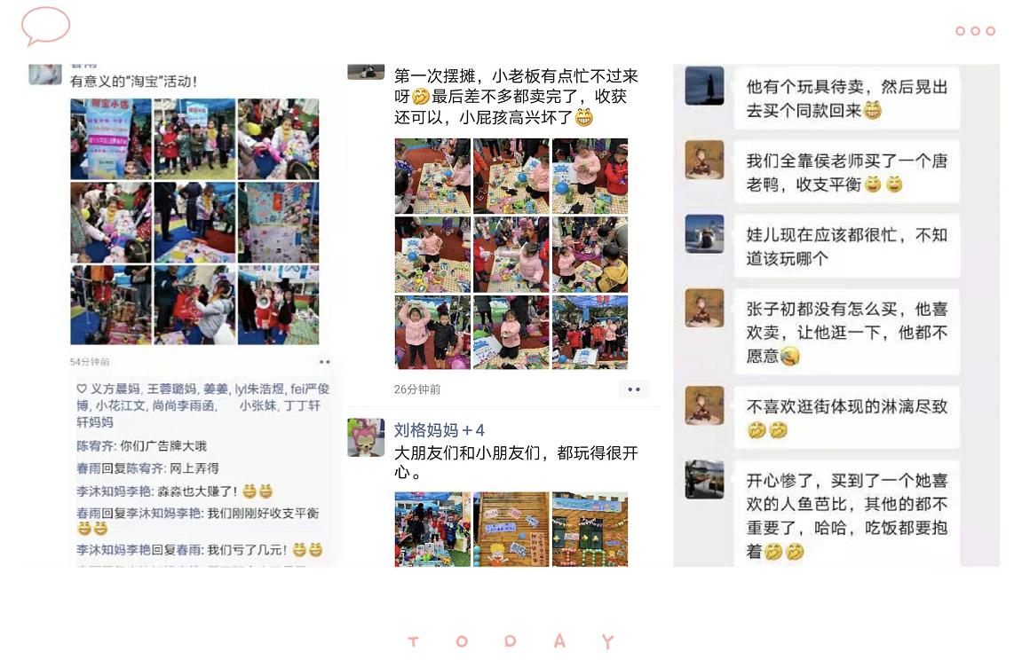 看着瞬间进入角色的孩子,家长也是欢喜不已,忍不住跟着帮忙。讨价还价的声音,和家长们被小老板萌到的笑声交织在一起,真是热闹极了!平时宽敞的操场上人头攒动,热闹非凡,俨然一副小商品市场的阵势。