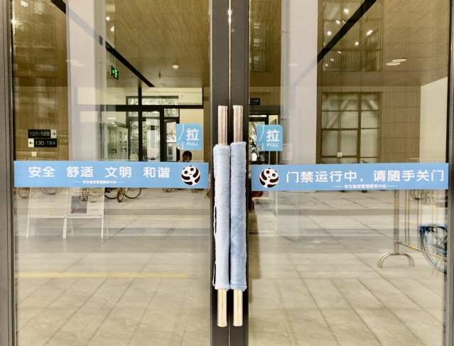 为了解决冬季门把手较冷且可能产生静电的情况,学生公寓中心精心选材定制了防静电防冻门把手套,给所有学生公寓出入口门把手穿上了冬季新装,让学生感受到了寒冬的公寓温暖。