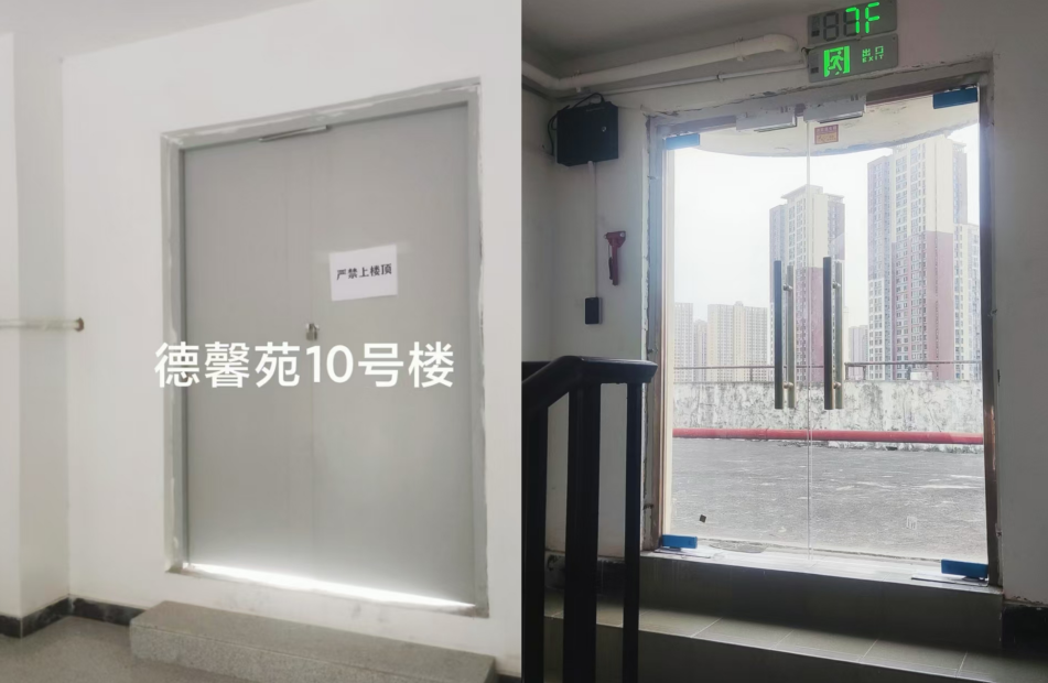 楼顶门升级改造前后对比——治安、消防双保障