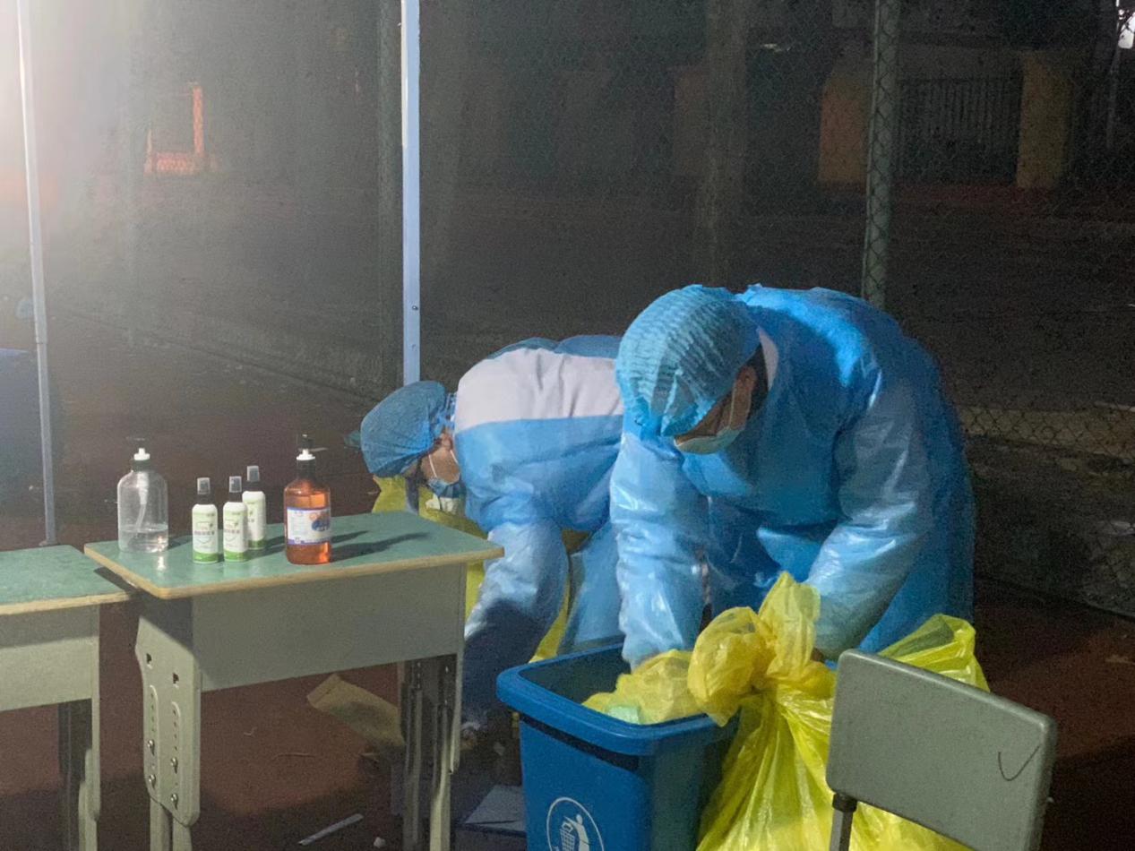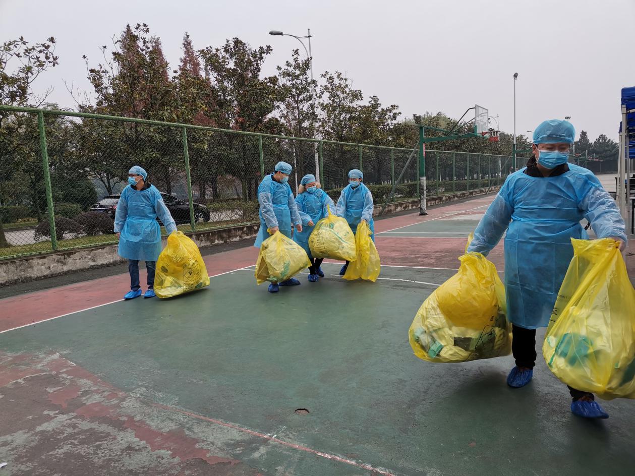 “核酸检测结束,请所有在校职工立即到检测点收医疗垃圾,保证明天核酸检测工作顺利开展!”12日凌晨00:40,谭建军一声召集指令,在校医务人员不顾12月冬季夜间寒冷的气温立即前往医院,穿戴防护服后前往检测点收集医疗垃圾。等将临江苑运动场、篮球场、锦地苑运动场三个检测点,三万三千余名学生检测后医疗垃圾按规定绑扎、称重、挂牌后,统一装车,装满整整两辆救护车车厢后,汗湿的衣服被凌冽寒风吹过感到寒冷时,才发现已经到凌晨3点多了。“大家赶紧回家吧,抓紧时间休息一下,明天还要继续为全校教职工及家属的新型冠状病毒核酸检测服务!”12日清晨全院职工又坚守岗位开始无怨无悔、兢兢业业为全校教职工及家属的新型冠状病毒核酸检测服务提供后勤医疗保障。