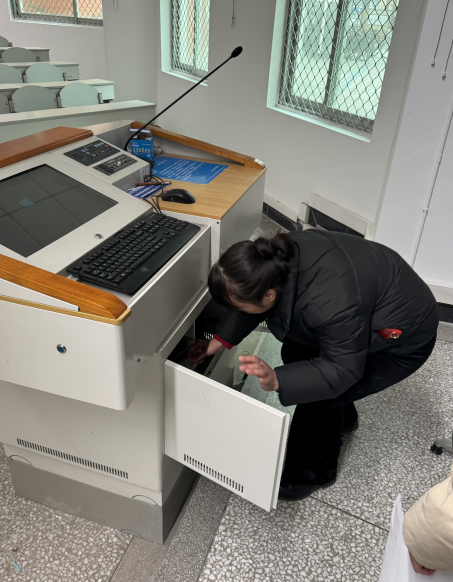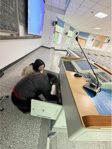 (检修调试多媒体教室设备)