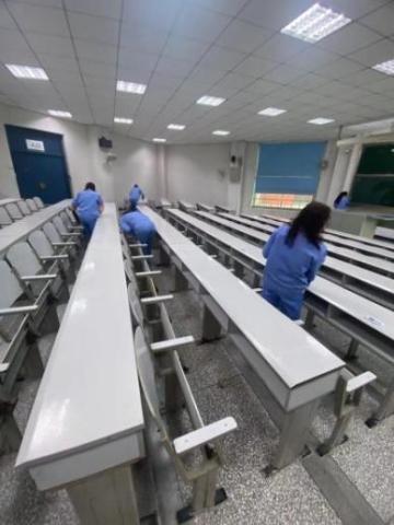 提前上岗,落实开学前各项工作。2月18日,物业管理中心召开全体员工大会,就物业管理工作进行安排布署。要求全体员工从2月18日开始正式上班,一是抓好对各楼宇及教室的深度清洁、每日通风和公共卫生间的全面清洗、擦拭消毒,确保教学环境的干净整洁。二是集中检修调试多媒体教室设施设备、检修教室窗帘、课桌椅等教室设施。三是对消防设施设备进行细致检查,查看有无损坏等。全体人员以饱满的工作状态回归岗位,全力投入开学准备工作。
