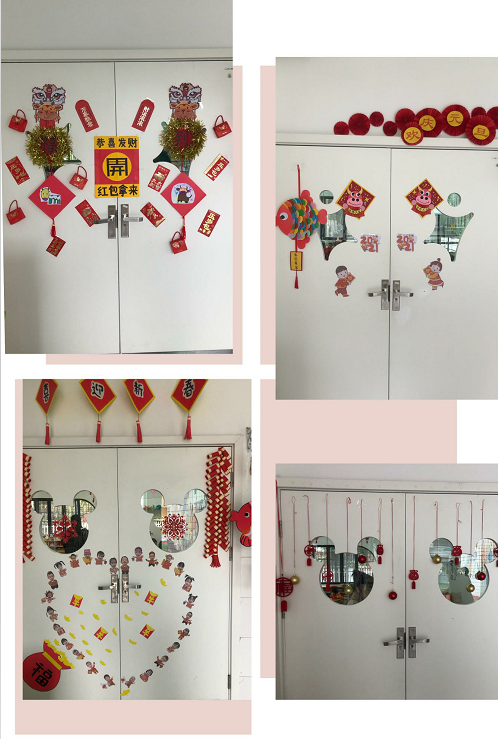 走进幼儿园,到处张灯结彩,喜气洋洋。浓浓的节日气氛饱含着浓浓的温馨和暖意。班级门口、教室里都是师幼共同布置的新年环境,孩子的心愿、老师的希望和家长的期盼都在这红彤彤的气氛中,营造出了浓浓的新年喜庆。