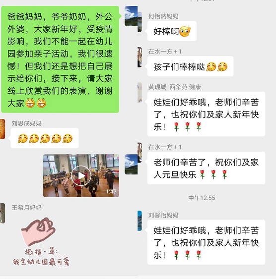 各班级分别开展了各具特色的迎新年活动,大班是丰富多彩的游戏活动,有小螃蟹运货、抢椅子、击鼓传花;中班以“我是最棒的”为主线,唱歌、跳舞、讲故事,让孩子们在舞台上展现身姿;小班的孩子们又是儿歌舞蹈串烧,又是制作灯笼、贺卡,他们发挥自己的想象力做出了一个个精美的灯笼和贺卡。孩子们在各种各样的游戏里动手、动脑、动嘴,体验了别样的幸福年。在活动过程中,老师们把小朋友的精彩瞬间发到家长群里,受到了家长们的一致好评!家长们纷纷表示:“由于疫情原因,我们没有参与到活动中真的是太可惜了。但是,孩子们在幼儿园老师们的陪伴下,一起开展庆祝元旦的活动,一起迎接新年的到来,仍然玩的那么开心、那么愉快。透过屏幕,我们也感受到了浓浓的年味!”