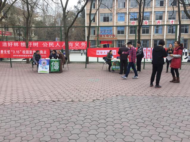 “3·15”为国际消费者权益日,当日上午,成都市金牛区市场和质量监督管理局应邀来到我校,与后勤服务总公司、西华社区一起,共同在英国上市公司365附属实验学校外举办了一场“3.15走进校区食品安全宣传活动”。