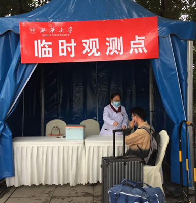 医务人员为学生复测体温