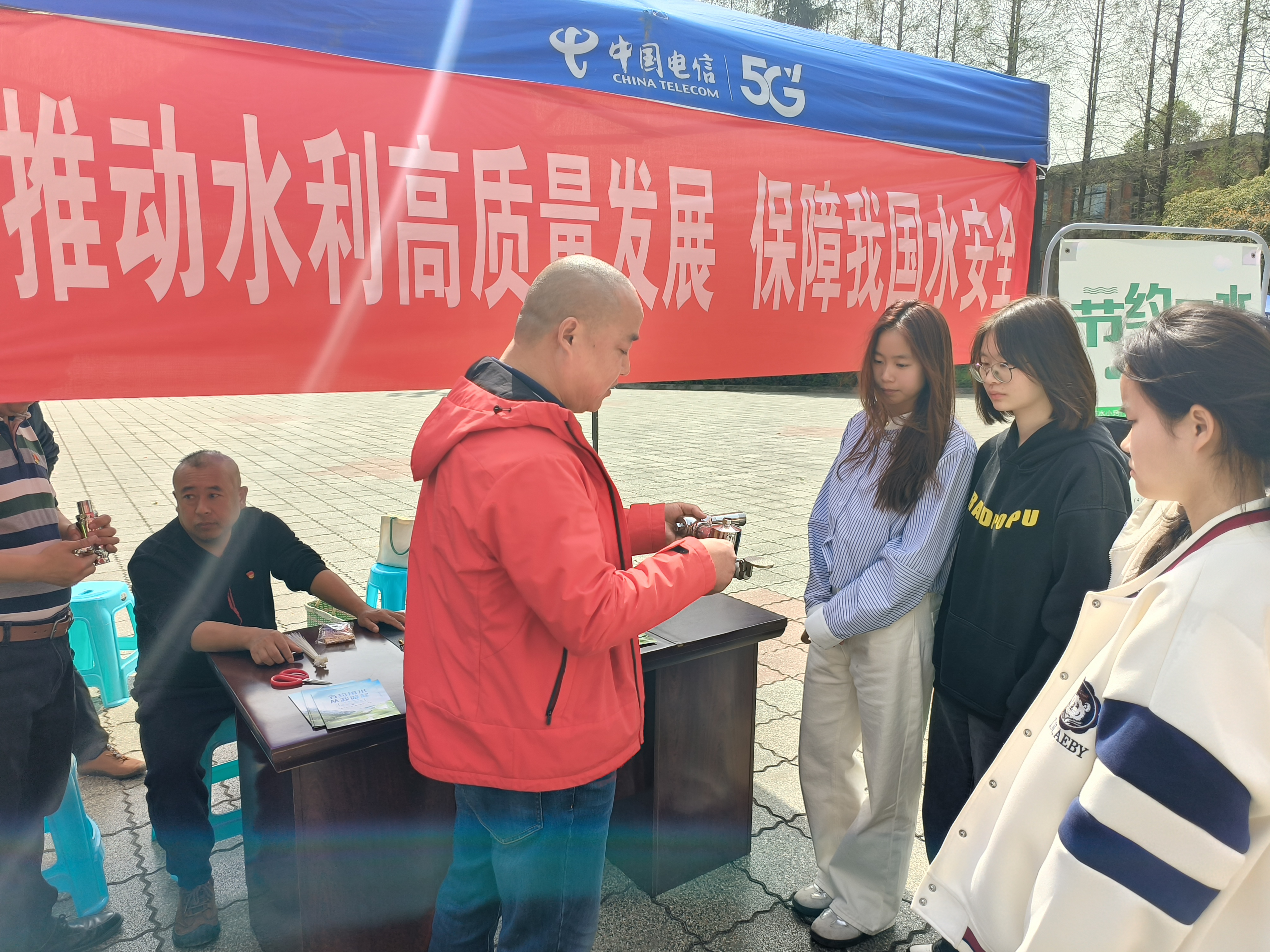 在活动现场,一是通过节水宣传展板、发放节水宣传手册,向广大师生及教职工宣传水资源现状、节水小妙招等节水方面知识;二是技术员通过现场讲解节水器具、如何选择节水器具以及节水器具的工作原理,让师生更直观的了解生活中节水型器具的种类和用途,让师生知道更多生活节水常识,认识到节水的重要性,学到实用的节水方法;三是师生们踊跃参加现场互动,并互相交流日常生活中的节水小技巧,争做“节水达人”。