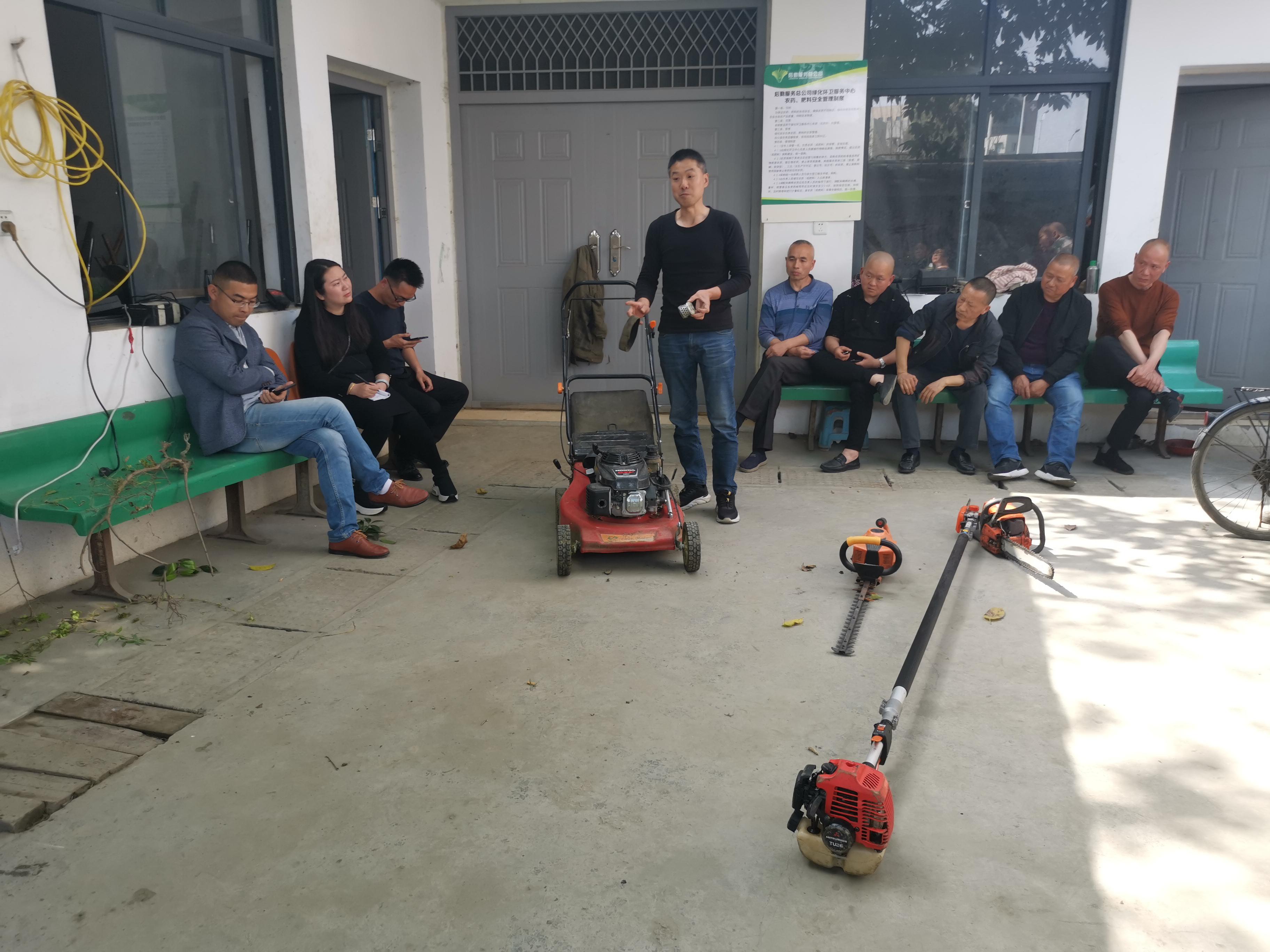 在绿化库房,园林绿化公司的负责人强调绿化养护对春季植物正常生长的重要意义,接着,技术人员根据校园内榕树、桂花树、杨树、女贞等植物的生长特点,针对性地介绍了介壳虫、蚜虫、红黄蜘蛛、叶斑病等常见病虫害的防治工作。同时,技术人员详细介绍了剪草机、电动绿篱机、油锯等各种园林器械的使用方法及维修保养等注意事项,绿化师傅们结合平时工作实操的经验,现场就开关风门、清洗空滤器、更换机油等安全问题展开讨论,力求达到对园林机械设备有更深理论认识的效果,以更好地指导实践。