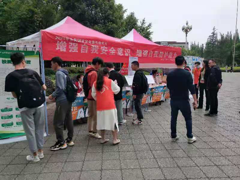 为进一步加强我校的安全宣传教育,提升我校师生的安全意识及自我防范能力,预防传染性疾病和食品安全的发生,按照《四川省教育厅关于印发<全省教育系统开展2021年“4.15”全民国家安全宣传教育日暨“国家安全宣传教育月”活动工作方案>的通知》文件要求和学校相关工作的安排,4月28日上午,后勤管理处、后勤服务总公司等部门在明德广场联合组织开展了“增强自我安全意识、增强自我防护能力”为主题的安全宣传教育活动。