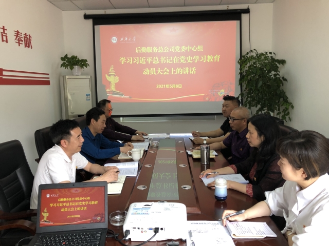 5月8日下午3点,后勤服务总公司召开党委中心组专题学习会,学习传达习近平总书记在党史学习教育动员大会上的讲话精神。公司党委委员参加会议,会议由公司党委书记赵东主持。