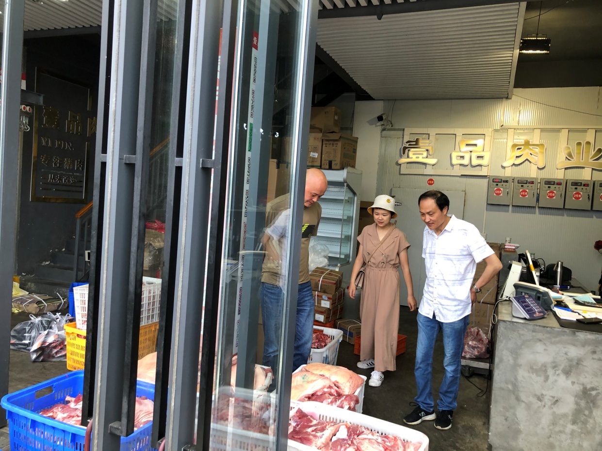 5月12日清晨6时许,物资采供与设备管理中心迅速联系饮食服务中心及食堂一线员工共同组成市场调查小组,对双流白家批发市场所售的猪肉品类进行市场调查。市场调查小组对白家批发市场上多家冷鲜肉门店所售的猪肉制品进行询价和走访,了解白条猪的价格、冷鲜肉处理工艺及猪肉的分割方式等。为真实反映当日猪价,市场调查小组采用多方询价结合现场采买的方式进行市场调查。据调查组了解,食堂猪肉常用品类降价区间约为3—4元/斤。调查完成后,物资采供与设备管理中心立即联系相关部门共同组成定价调价小组,根据市场调查结果,对猪肉品类现场调价。