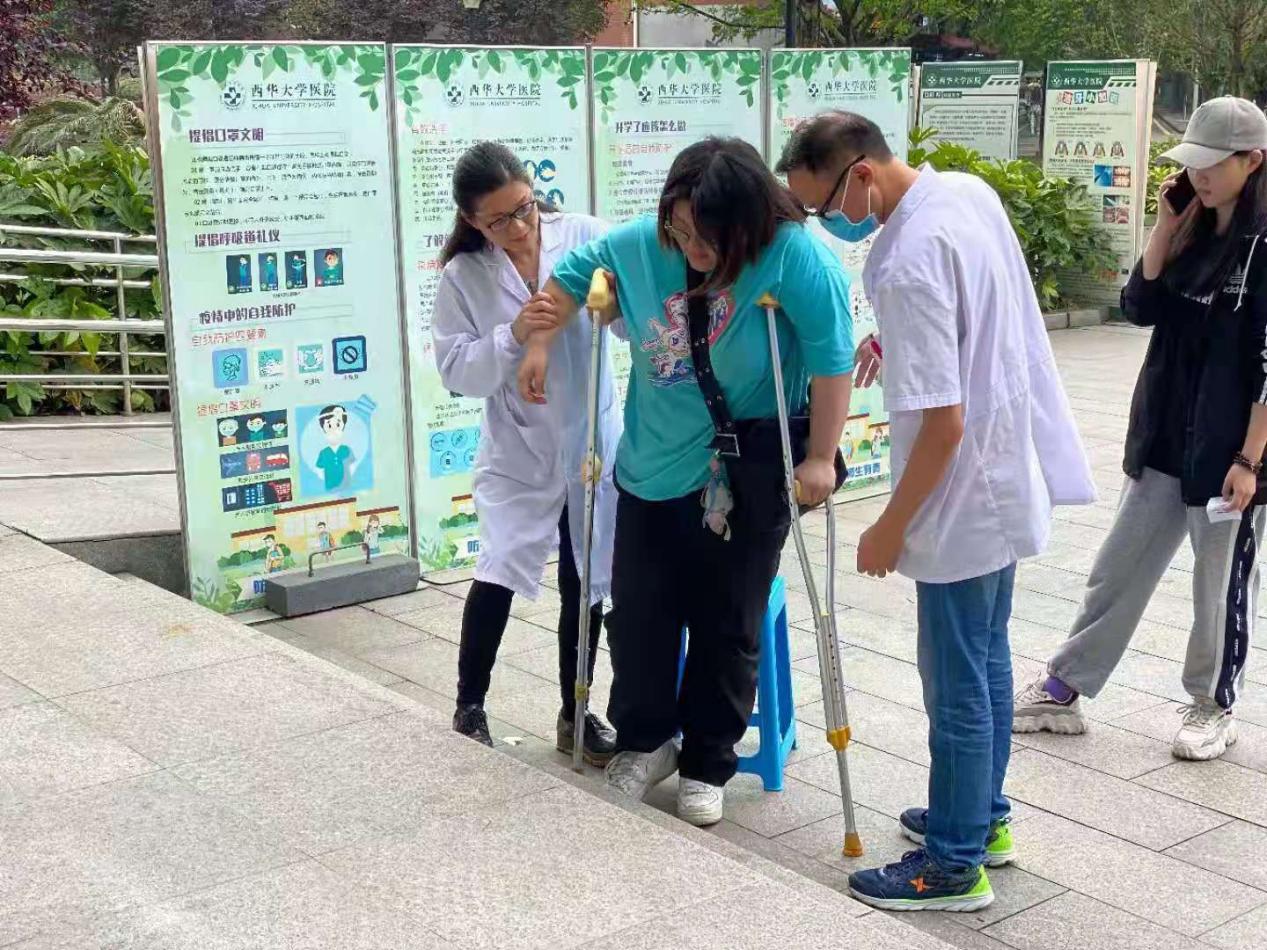 郁晓燕医生和黄超医生搀扶受伤的同学