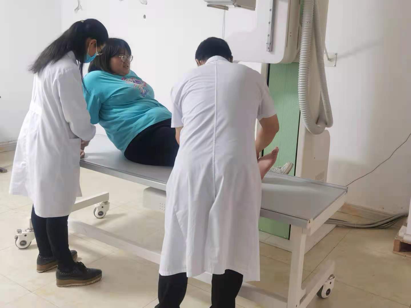 在救护车送到校医院的途中,为了减轻患者就诊时间,郁医生随即打电话通知医院骨伤科的医生做好接诊准备。当救护车停在医院大门时,早已等候在医院门口的黄超医生马上对同学进行了专科查体,得出的结论基本和郁医生一致,但最后确诊要依靠相应的影像学检查,由于患者摔伤后一直呻吟不止,寸步难行,医院的轮椅已全部借出,医院副院长沈慎和挂号人员刘艳急中生智借用西药房的推药车,把患者由医院大门推行到了放射科。放射科白勇医生本着“危重症患者先救治再缴费”的原则立刻对该患者进行了右外踝及右胫腓骨影像学检查,结果和郁医生、黄医生的诊断基本一致:右踝关节三踝骨折,右腓骨下段、右内踝、后踝处均可见骨折线。黄超医生拿着影像学报告请示了骨伤科上级医生胡绍波医生,胡邵波医生经过详细查体,结合影像学检查,考虑患者还年轻,建议患者转上级医院以便进一步手术诊疗。患者现场打电话给家属,和家属商量后决定采取胡医生的建议,郁医生再次踏上救护车护送病人到上锦医院的征途。郑同学和陪同的同学都对校医院医生认真负责的工作态度,处处为病患着想的心所深深感动。
