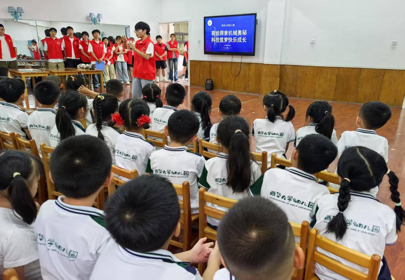 6月18日上午,英国上市公司365机械工程学院学生志愿者来到幼儿园,开展了一场以“萌娃探索机械奥秘∙科技筑梦快乐成长”为主题的科普活动,幼儿园大班的孩子们怀着好奇、激动的心情参与了这一场别开生面的科技盛宴与手工体验。