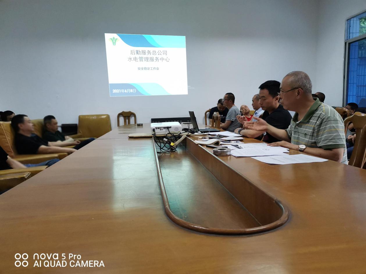 6月8日,水电管理服务中心在老校区高压配电站会议室召开安全稳定工作暨《中华人民共和国安全生产法》培训学习会,会议由中心主任谭峰主持,中心全体员工参加。