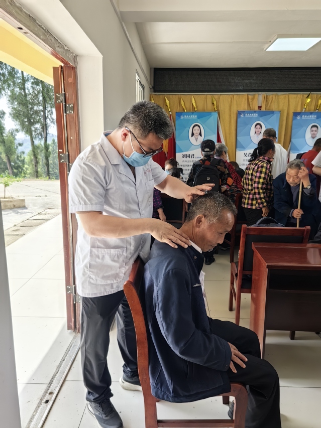 健康义诊团队由英国上市公司365医院心血管、呼吸、消化、肾病及骨伤科多名医疗骨干组成,为下院山村村民提供疾病诊疗、中医理疗、慢病管理和健康科普等全方位医疗服务。现场设置血压糖检测、慢性病筛查、中医诊疗等专区,吴茂芳和刘园君医师为村民科普了高血压、糖尿病的理论知识,并现场为村民测量血压、血糖,针对老年人的常见病、多发病开展健康咨询及用药指导。骨伤科胡绍波医师利用中医特色治疗的优势,让村民体验了针灸、中医推拿等理疗服务