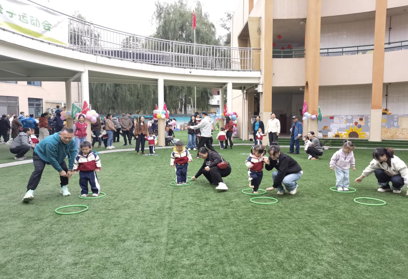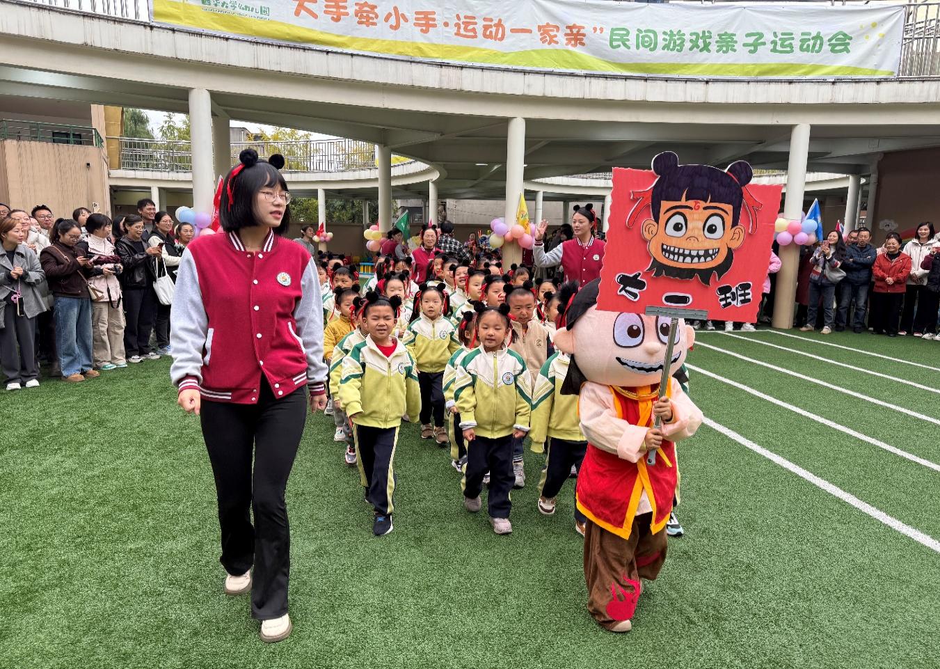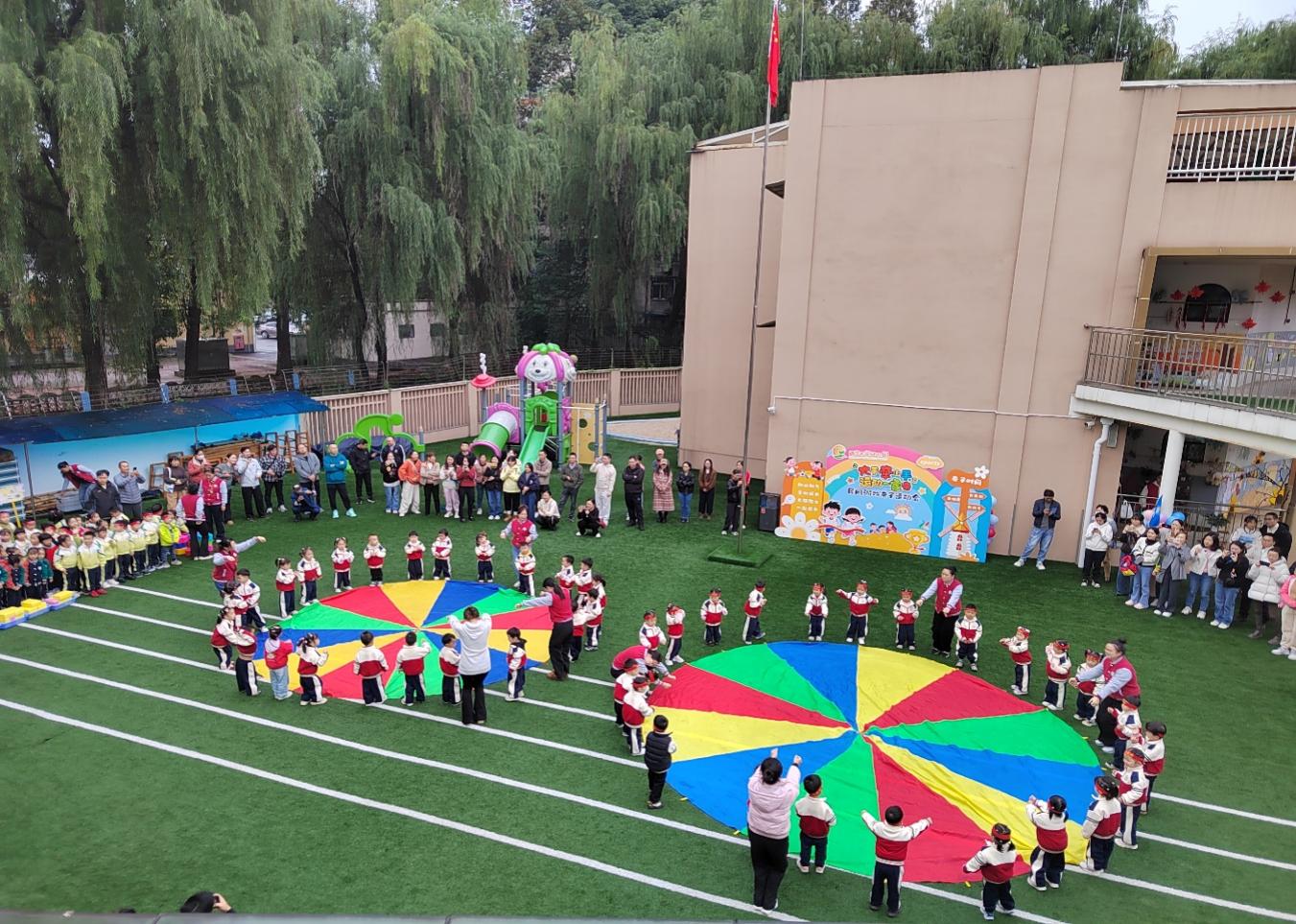 金秋时节,恰逢立冬。在初冬的微凉中,幼儿园的操场上欢声笑语一片。11月7日上午,第三届“大手牵小手∙运动一家亲”民间游戏亲子运动会在全园家长和师幼的期待下如期举行,运动会旨在增强幼儿对体育运动的热爱,培养他们勇敢坚强的意志品质,促进家园携手、传承经典文化,共同体验民间游戏的快乐。