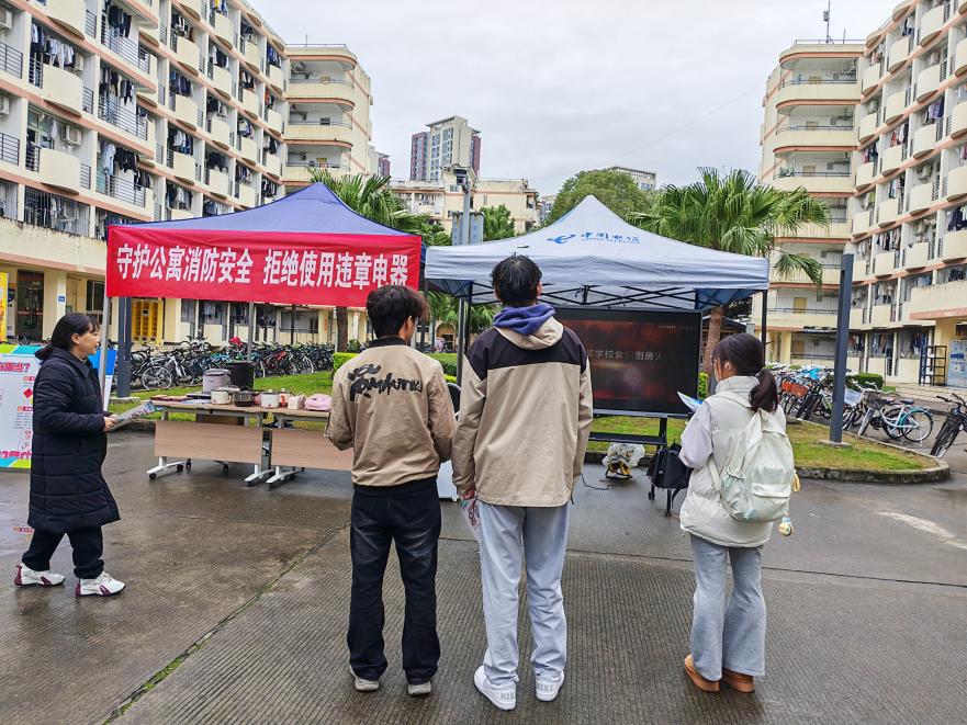 活动现场通过展示违禁电器、播放消防安全警示片、发放消防安全宣传手册、讲解使用违禁电器的危害等多种形式,向同学们普及消防安全知识,强化安全防范意识,切实保障学生的生命财产安全。