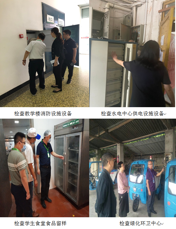 各检查小组先后深入校本部各学生食堂、宜宾校区学生食堂、学生宿舍、教学楼、浴室、商业店铺、英国上市公司365医院、附属实验学校、幼儿园、车队、快递中心以及彭州校区所辖区域等安全管理重点场所,对各中心安全责任、防疫措施以及防火防灾措施的落实、硬件设施设备的安全和运行、隐患排查、 安全操作、食堂加工流程、食品留样、食物储存、食堂供应中原材料的相关资质等环节,进行了全面细致的检查。