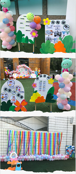 为了这次活动,幼儿园组建了“跳蚤市场”筹备小组,老师们在课余时间一起勾画、剪纸、张贴、吹气球,自己设计并布置好“跳蚤市场”背景墙。家长们和孩子们精心设计了海报,制作了富有特色的摊位招牌。