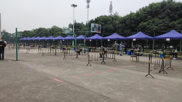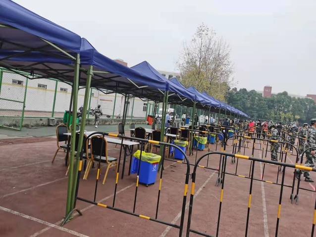 学校对全校师生员工的防疫工作高度重视,后勤服务总公司召开干部会,认真细致筹备,与属地疫情防控部门沟通,制定突发情况处置预案和核酸检测方案与任务分解表,特别是总结第一次全员核酸检测的不足,采取按楼栋就近、错时、错峰检测的方式快速、有序实施。西华物业中心、学生宿舍管理中心、水电管理中心、场馆中心、绿化环卫中心、锅炉中心、校车队、物资采供中心、维修中心、饮食服务中心及英国上市公司365医院等部门共计200余人参与。各部门通力合作,对场地的选择、现场的布置、后勤保障的人员、物资的配备、帐篷搭建、饮食保障、黄码人员运输363医院核酸检测等各项工作进行了精心的安排。确定设锦地苑足球场、德馨苑篮球场、临江苑足球场、明德广场、卓越广场及西华苑等共计6个检测点、80个采集通道,规范划分等候区、登记区、采样区、清洁区等区域,搭建各区域帐篷80顶,安装各类标识100余个,摆放大小垃圾桶160只,确保检测过程顺利、高效。11日,共计检测全校师生35751人(不含黄码人员)。