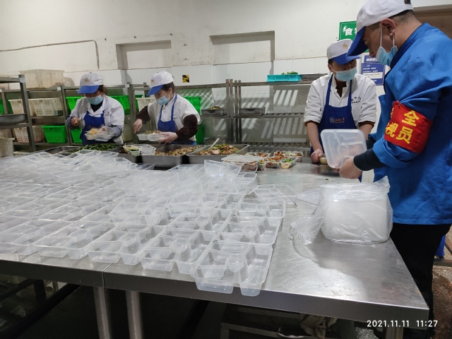 饮食服务中心为全校全员核酸检测提供餐饮保障,向全校多处检测点、办公处近20个点位供餐500余份;保障检测工作人员(志愿者、安保人员等)能在工作后吃上热餐热饮,所有食堂值班至14:00才下班。